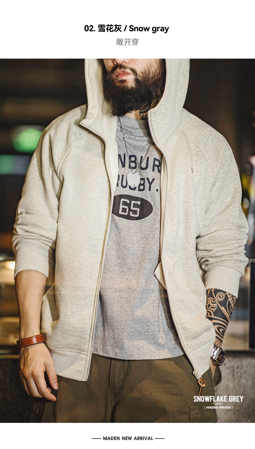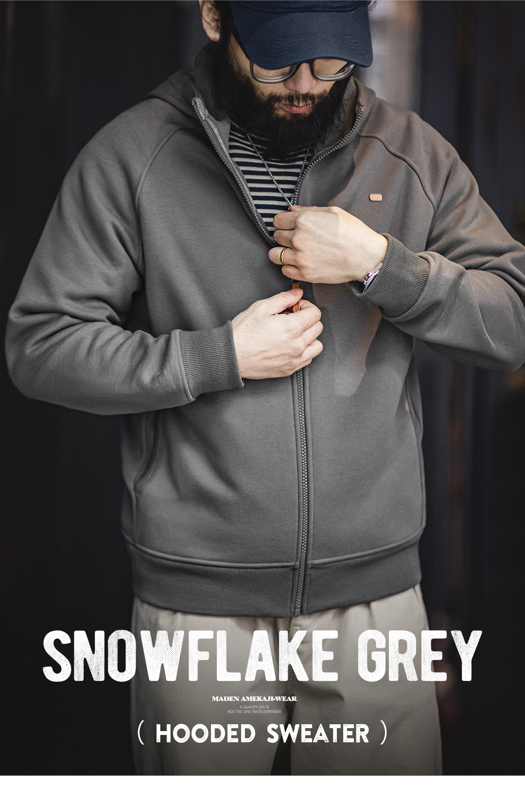 Madden Tooling 미국 캐주얼 눈송이 회색 후드 스웨터 무거운 기모 지퍼 스포츠 카디건 재킷 남자의 가을