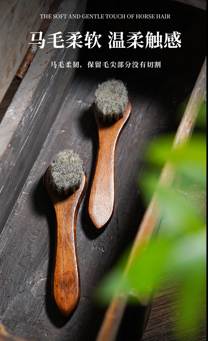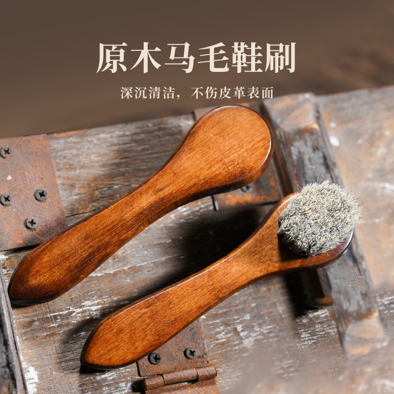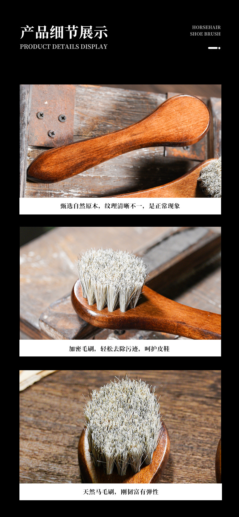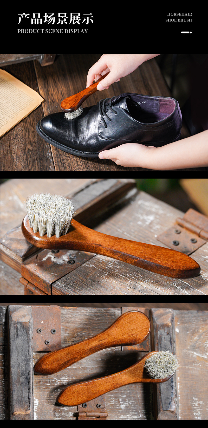 가죽신발용 오일 브러쉬, 원목 손잡이 브러쉬, 청소 및 먼지 제거용 말털 브러쉬, 손에 묻지 않고 가죽 손상 없이 먼지 제거, 고급 신발용스토어 가기