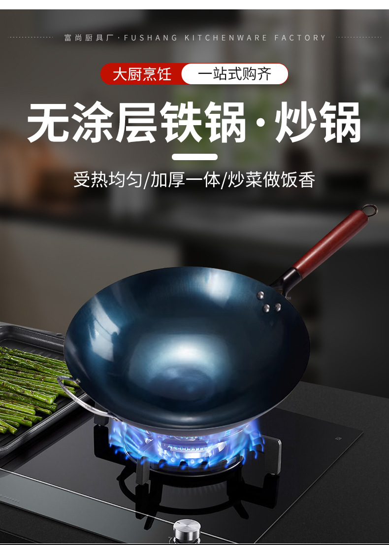 • 34cm 질화 둥근 바닥 웍(귀 포함)