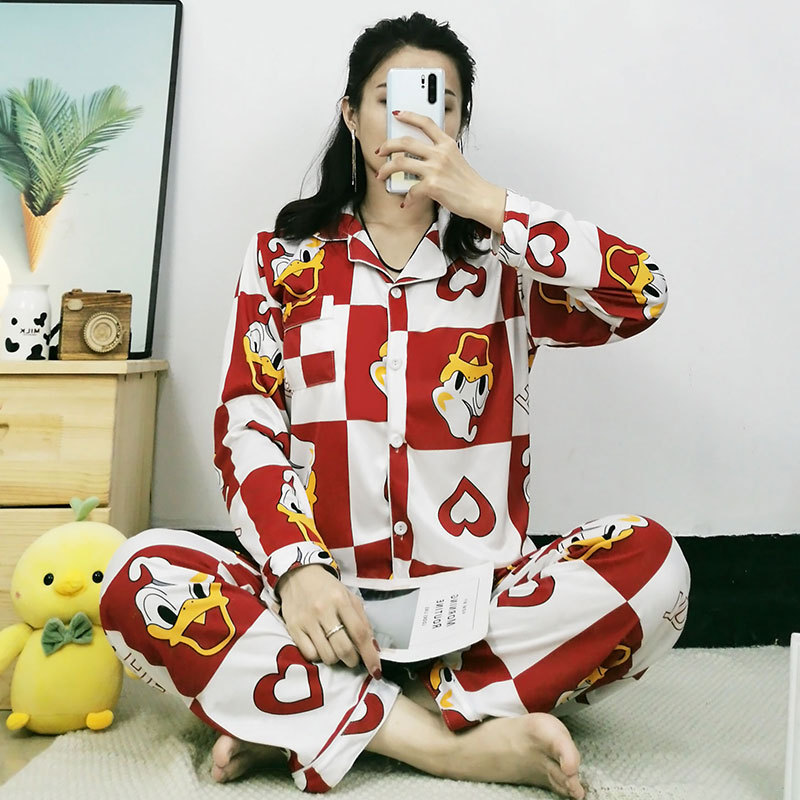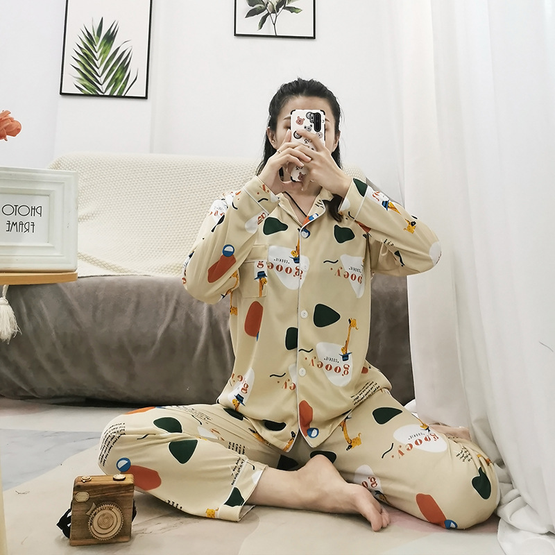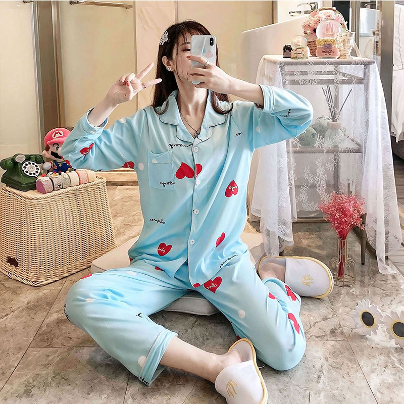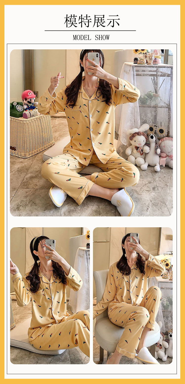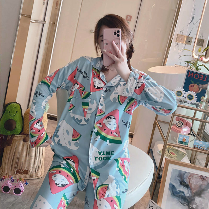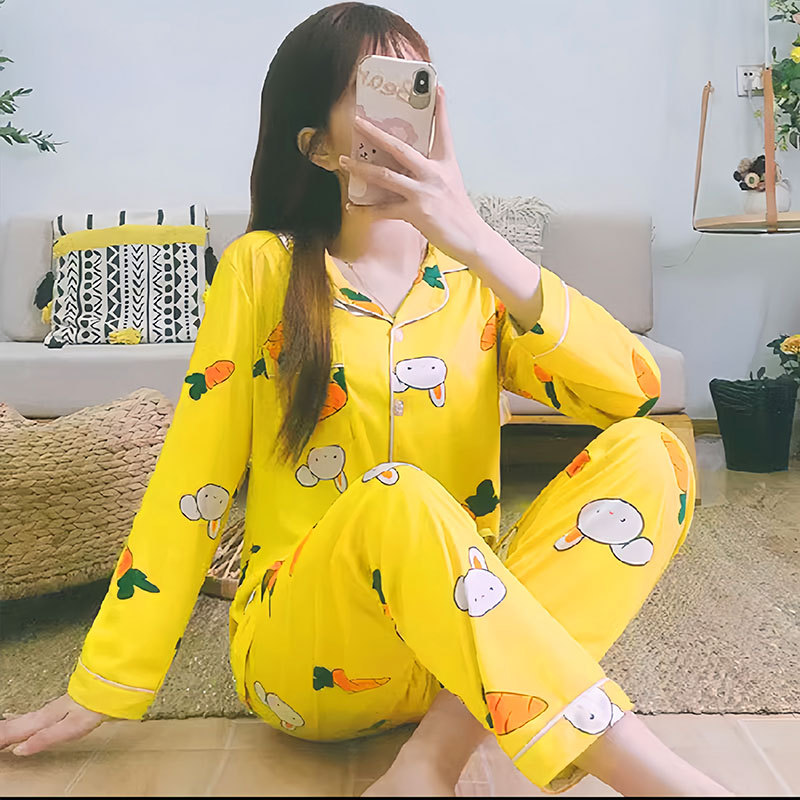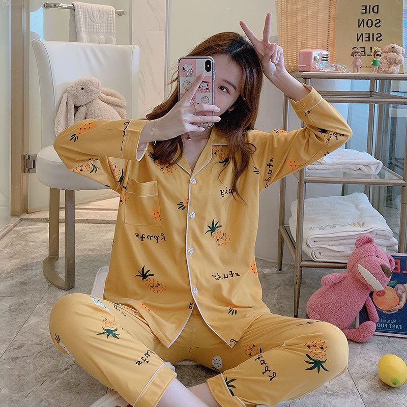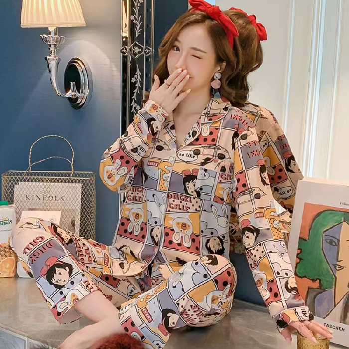 여성용 봄가을 카라 긴팔 가디건 잠옷, 루즈핏 스위트 만화 캐릭터 학생풍 인스타 감성 홈웨어 세트스토어 가기