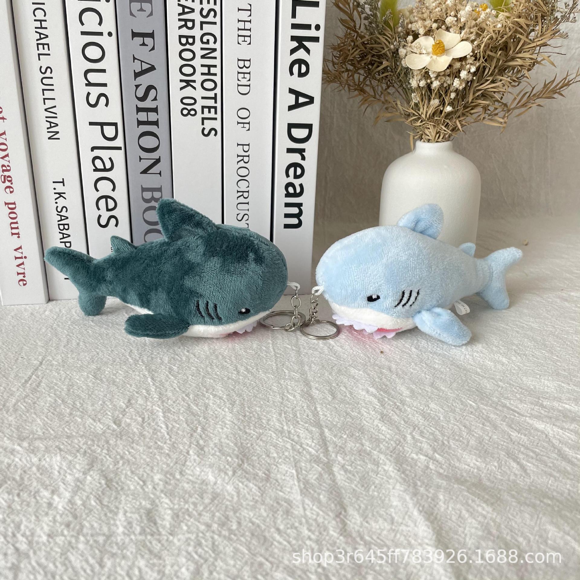 귀여운 봉제 상어 어린이 책가방 펜던트 인형 키 체인 여성 in 트렌디 한 남성용 배낭 장식품 작은스토어 가기