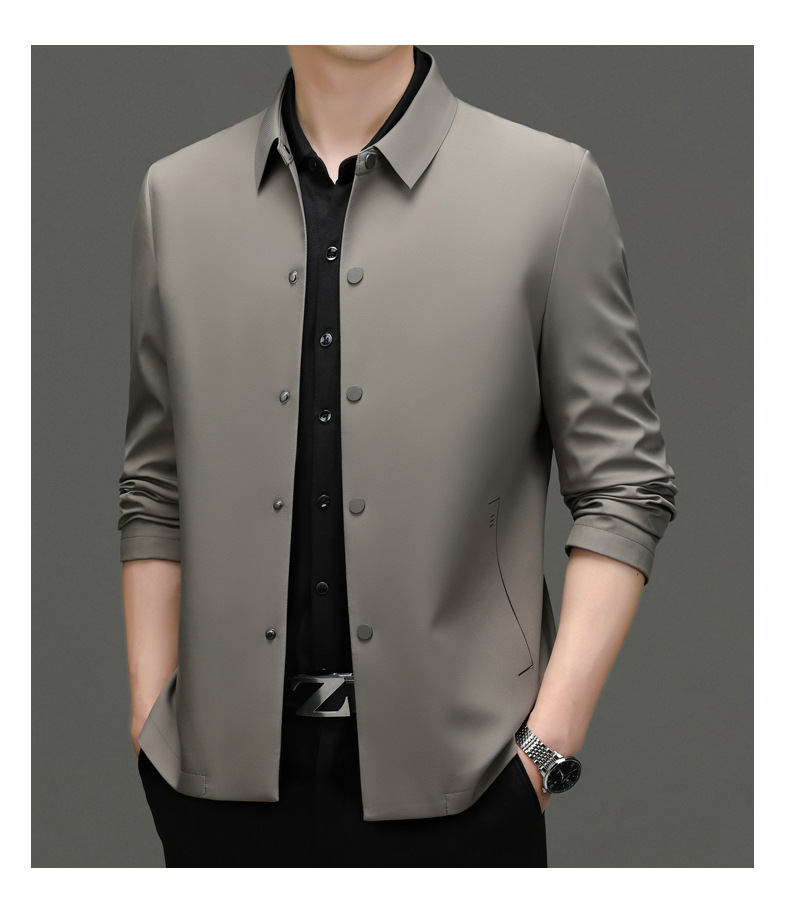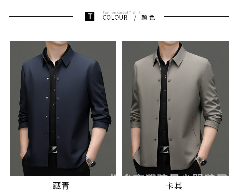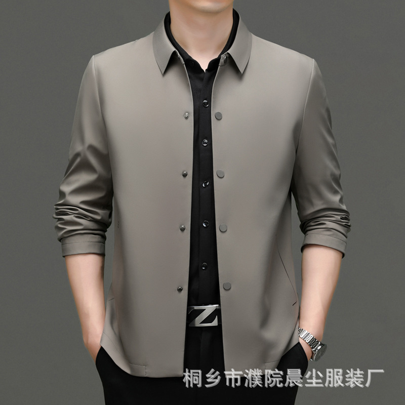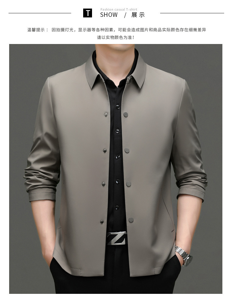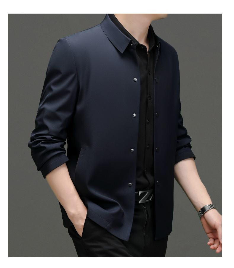 2023秋季新款商务休闲翻领纯色无痕夹克外套高品质口袋爸爸装上衣
