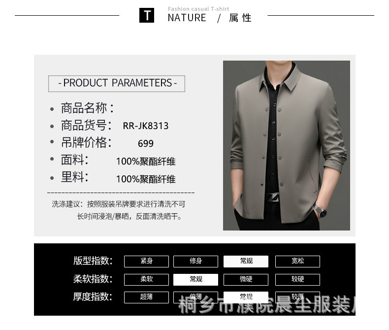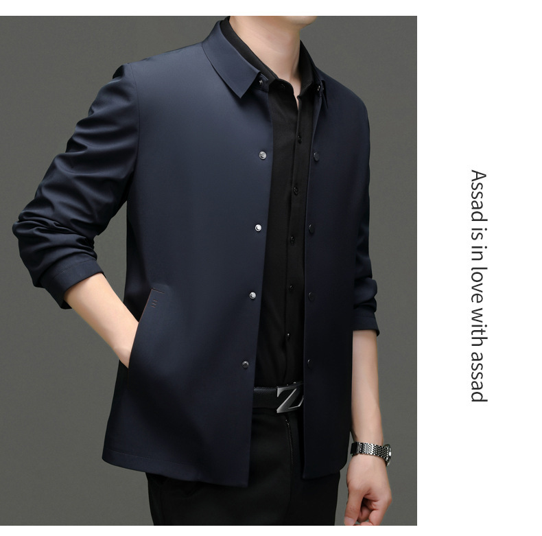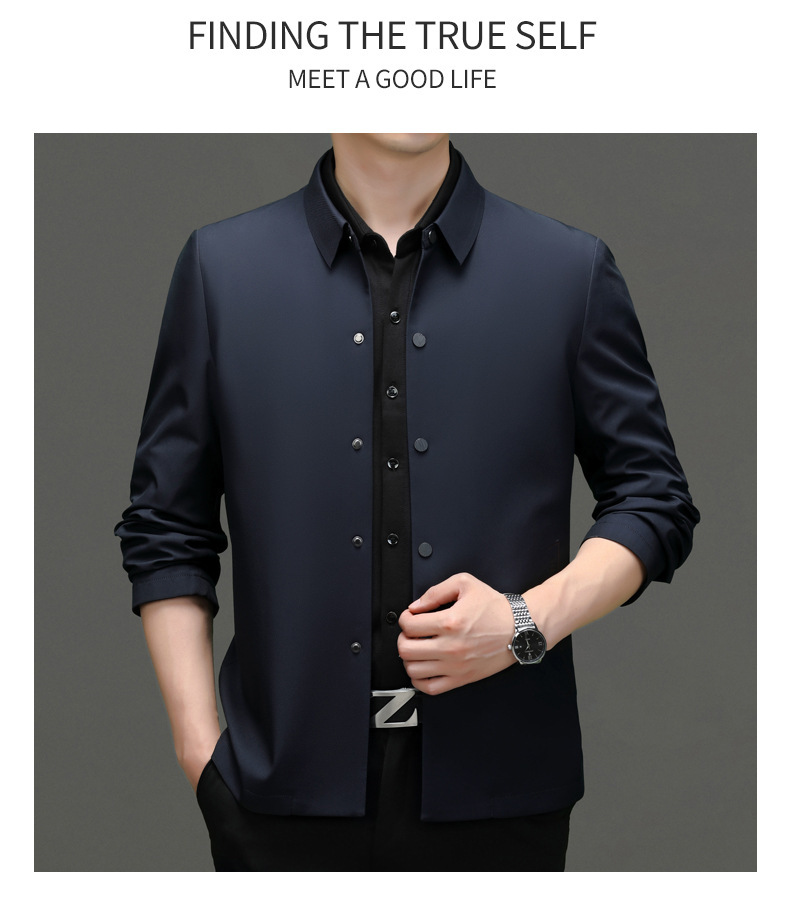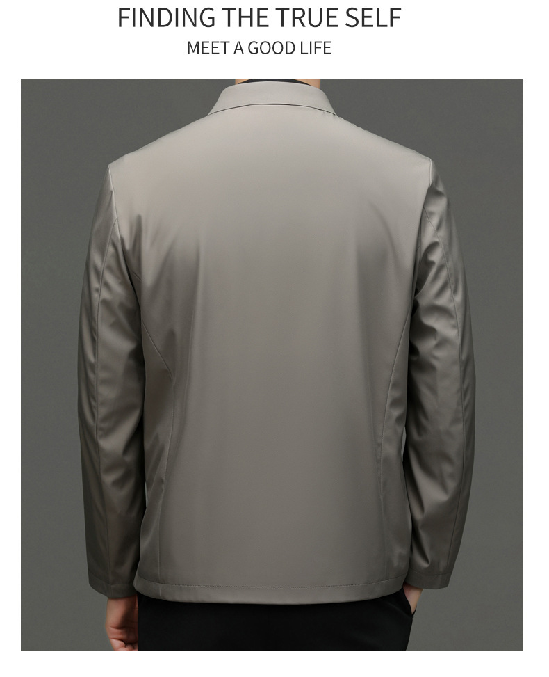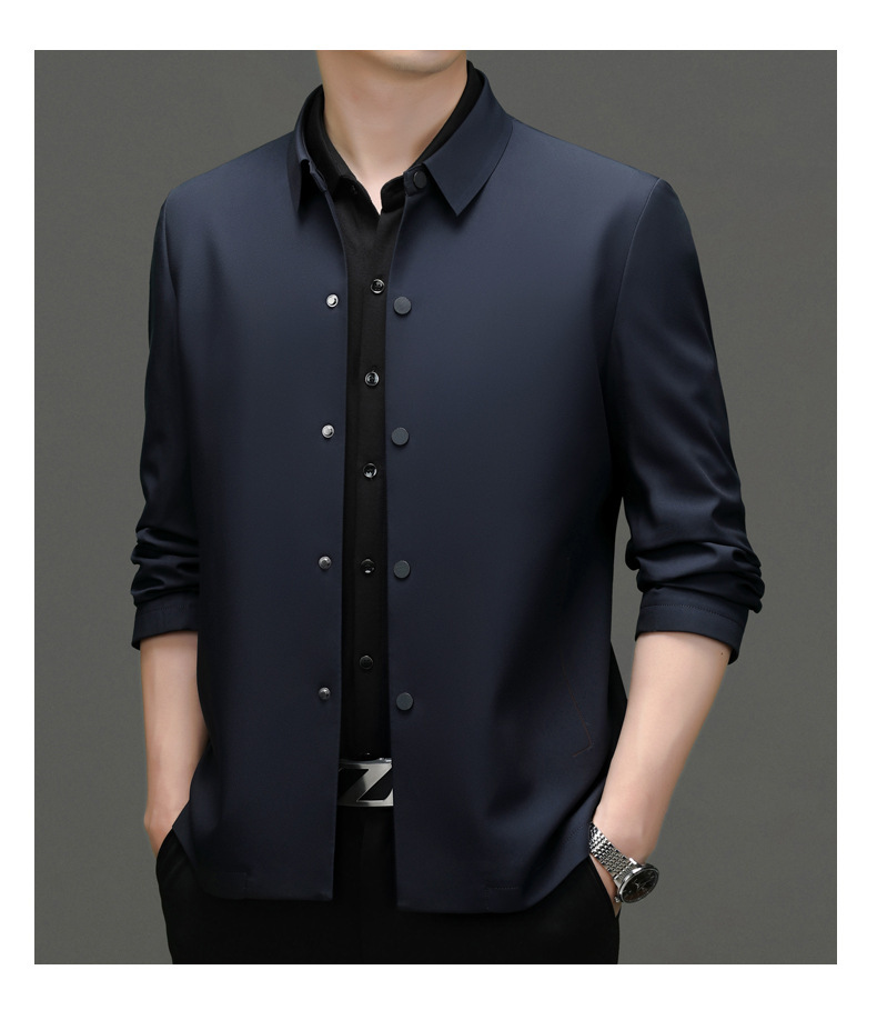 2023秋季新款商务休闲翻领纯色无痕夹克外套高品质口袋爸爸装上衣