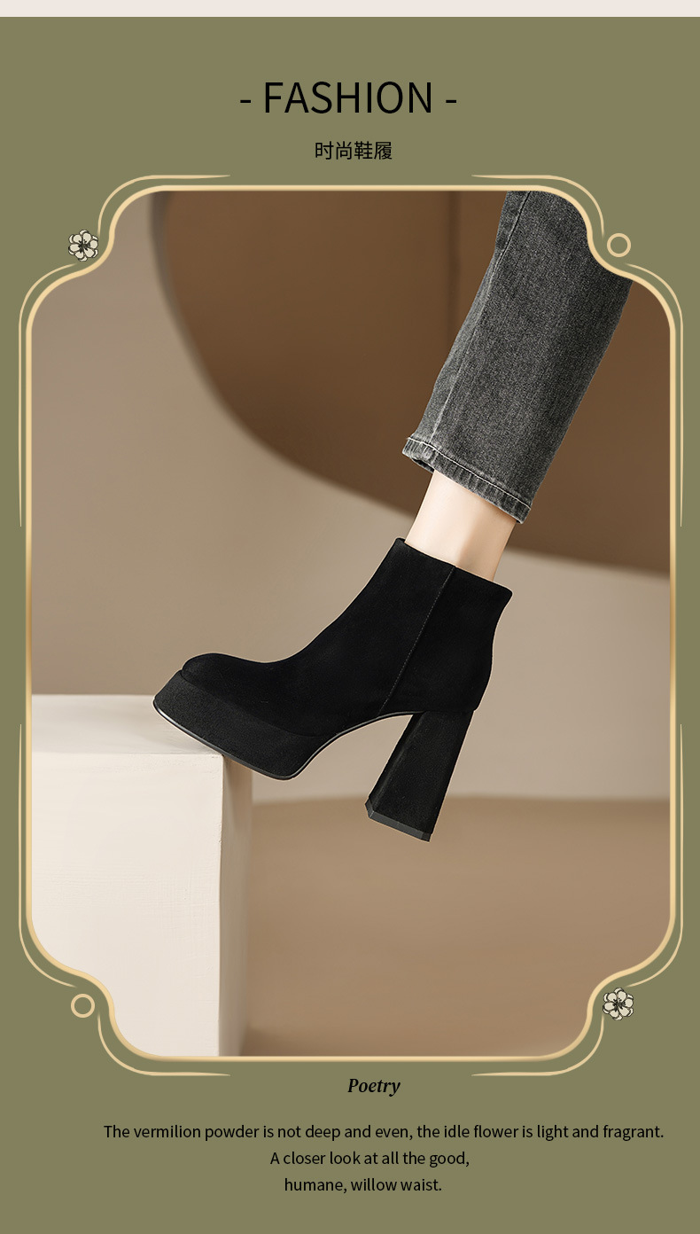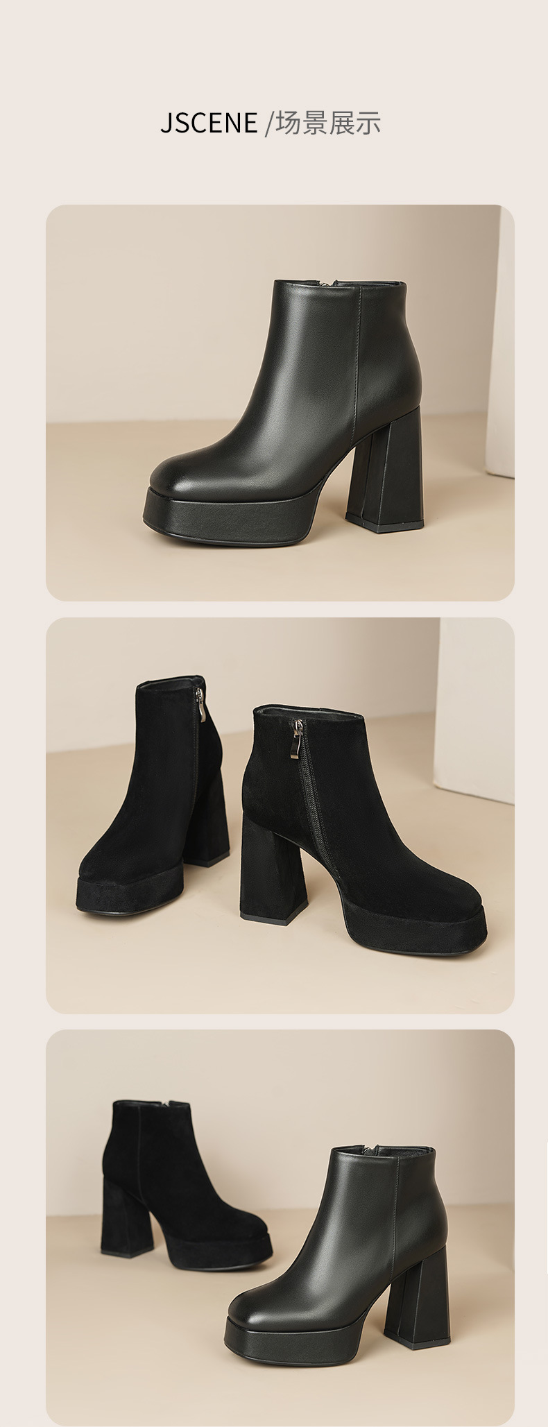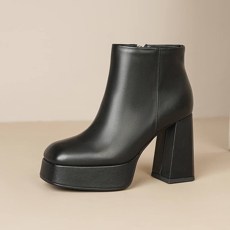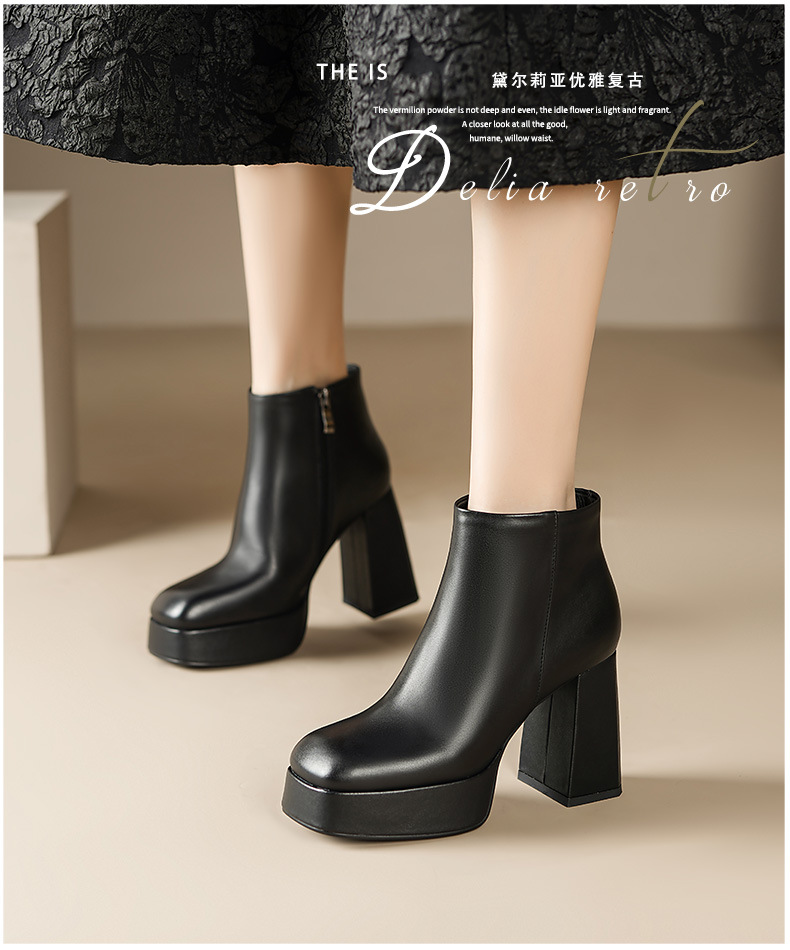 2025 봄 새로운 광장 발가락 마틴 부츠 여성 하이힐 짧은 부츠 두꺼운 뒤꿈치 싱글 부츠 방수 플랫폼 소 가죽 여성 부츠 도매스토어 가기
