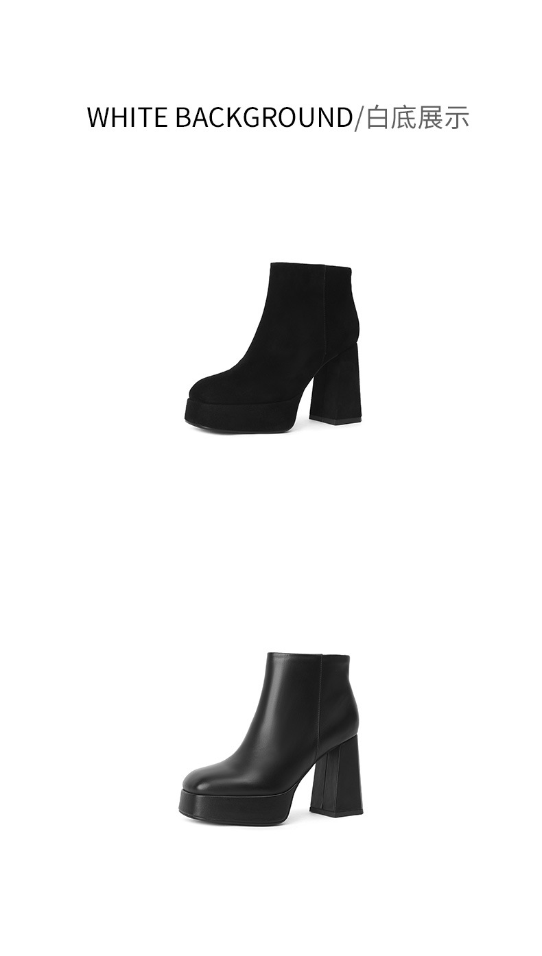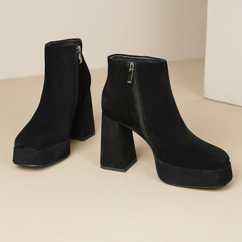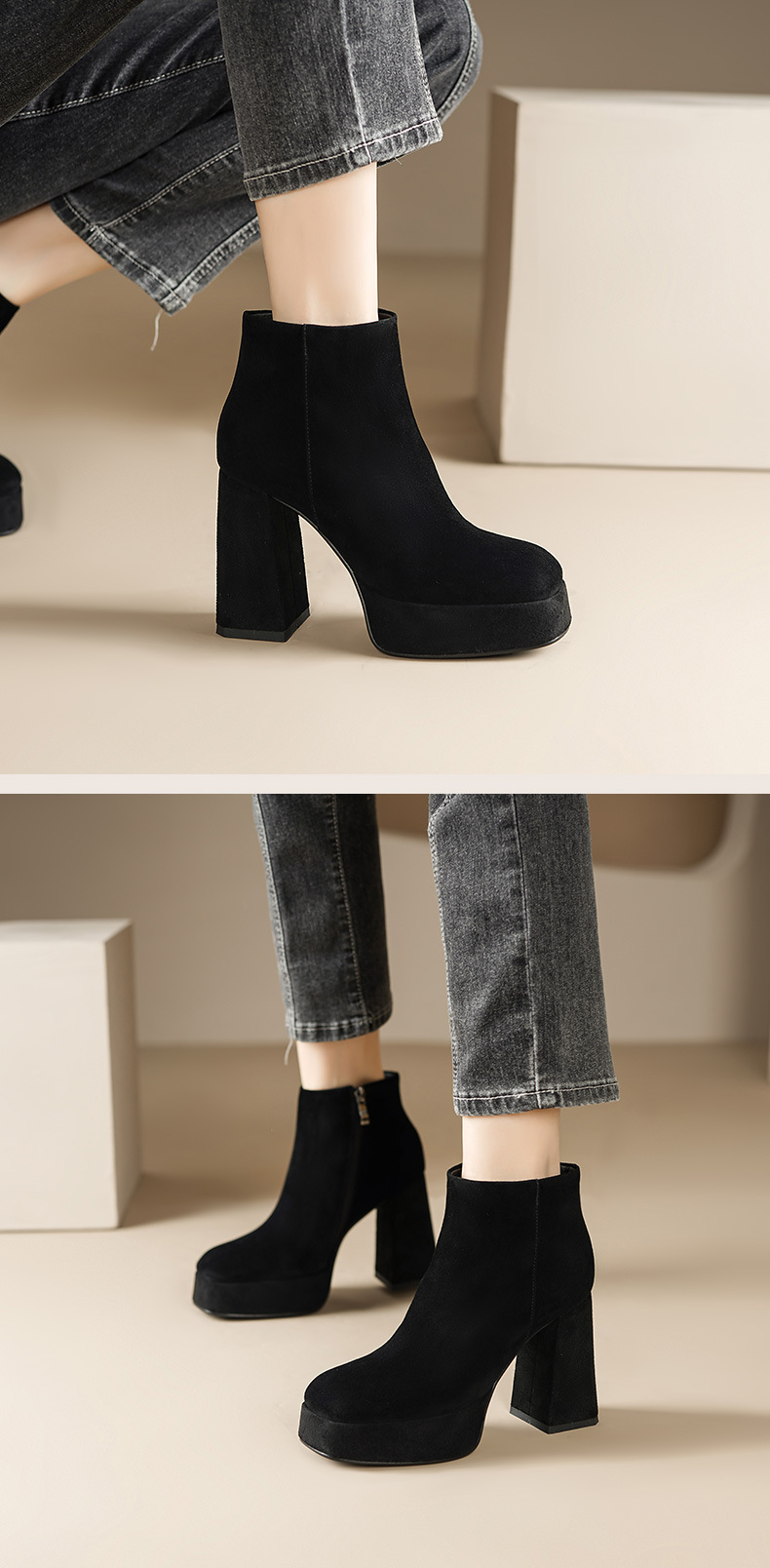 2025 봄 새로운 광장 발가락 마틴 부츠 여성 하이힐 짧은 부츠 두꺼운 뒤꿈치 싱글 부츠 방수 플랫폼 소 가죽 여성 부츠 도매스토어 가기