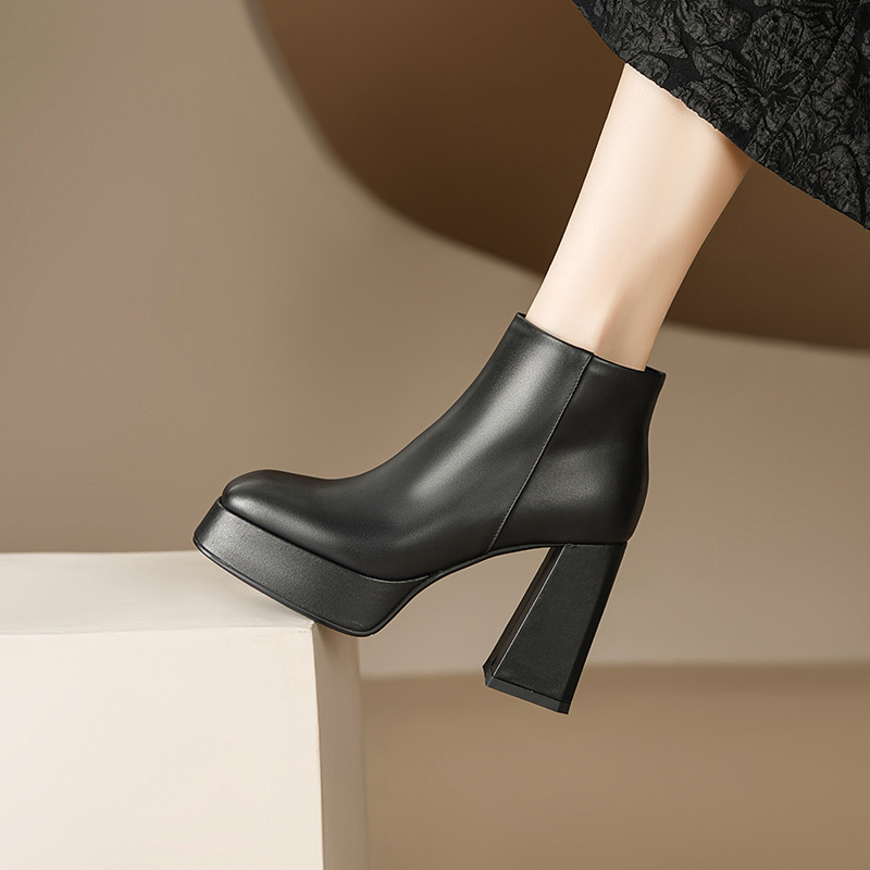 2025 봄 새로운 광장 발가락 마틴 부츠 여성 하이힐 짧은 부츠 두꺼운 뒤꿈치 싱글 부츠 방수 플랫폼 소 가죽 여성 부츠 도매
