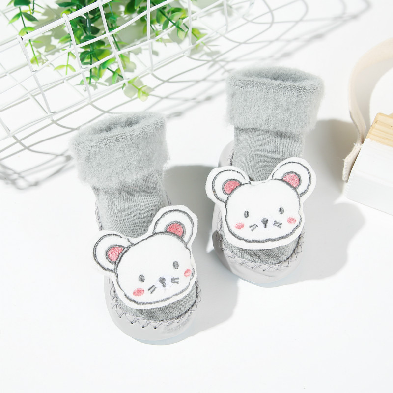 새로운 바닥 양말 아기 유아 신발 어린이 두꺼운 기모 따뜻한 유아 신발 미끄럼 방지 아기 남성 및 여성 어린이 신발 및 양말스토어 가기