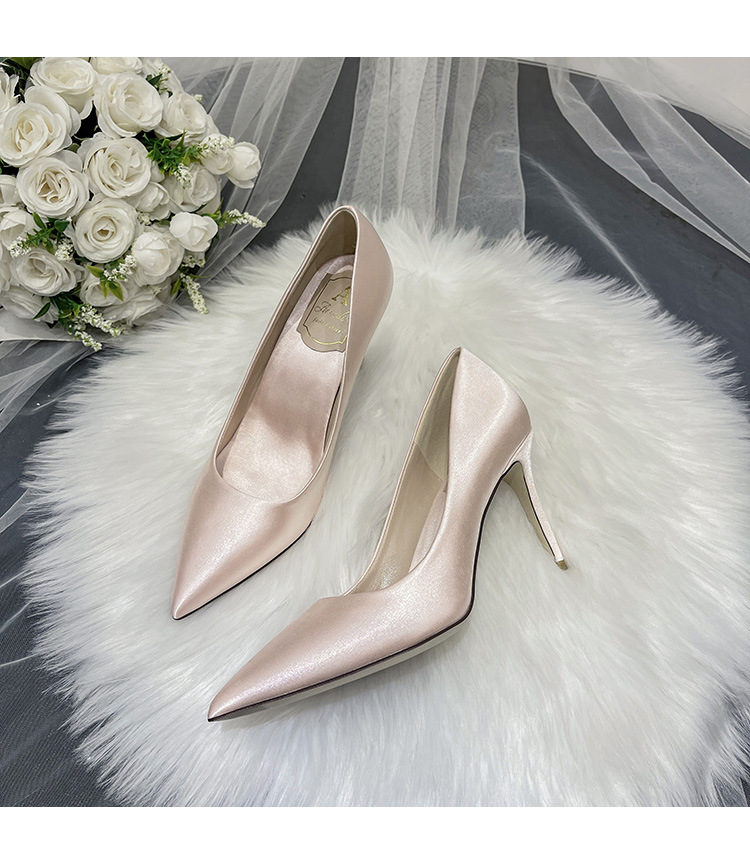 메인 웨딩 슈즈 화이트 하이힐 여성용 스틸레토 새틴 원피스 슈즈 샴페인 들러리 신발 플러스 사이즈 42 43스토어 가기