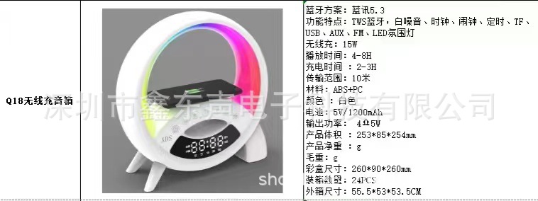 새로운 대형 Q 디스플레이 시계 알람 시계 15W 무선 충전 화이트 노이즈 블루투스 스피커