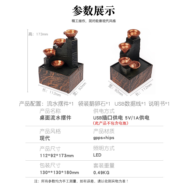 데스크탑 부 만들기 물 장식품 거실 사무실 작은 분수 풍수 휠 분재 공예 선물 보석