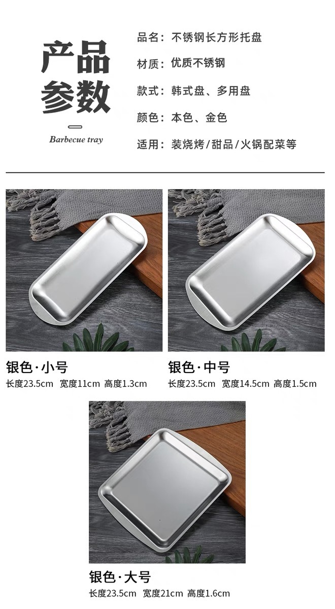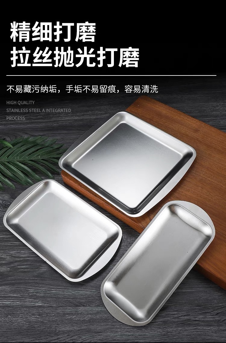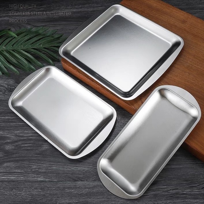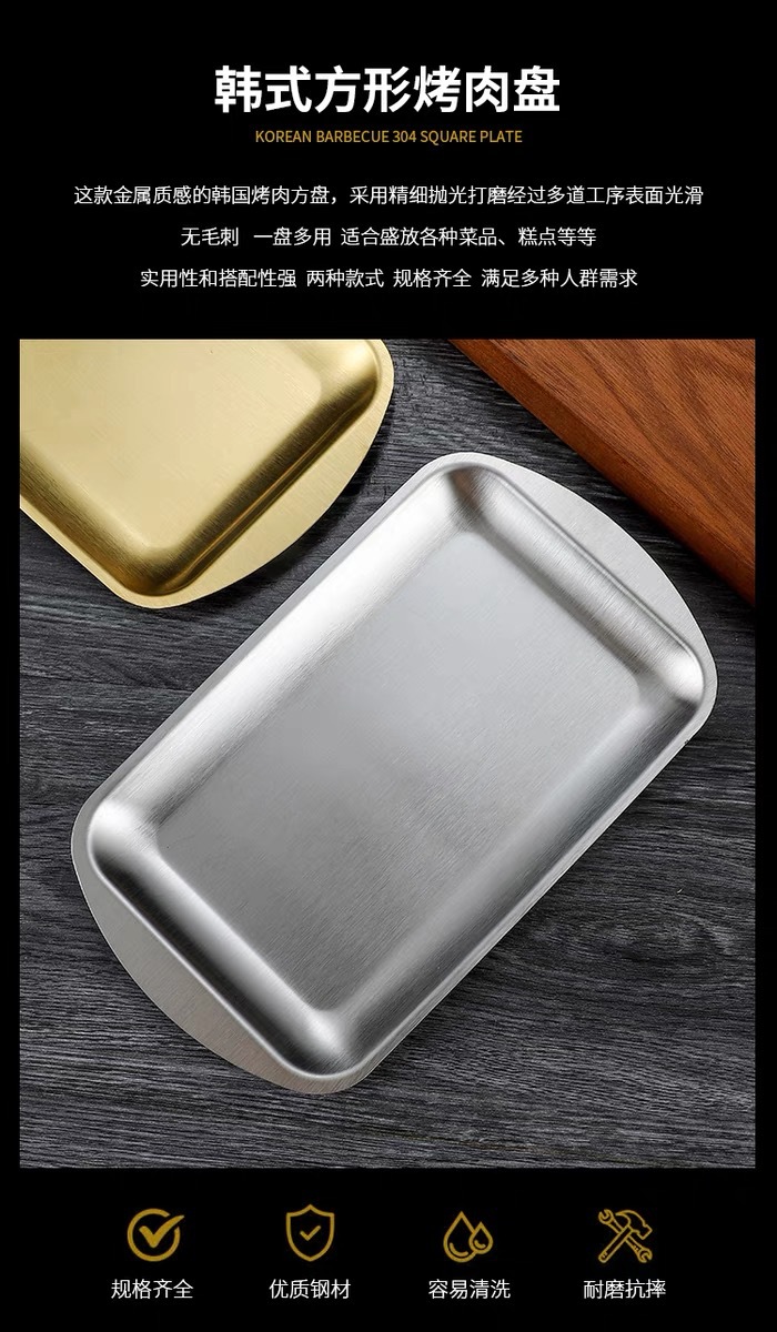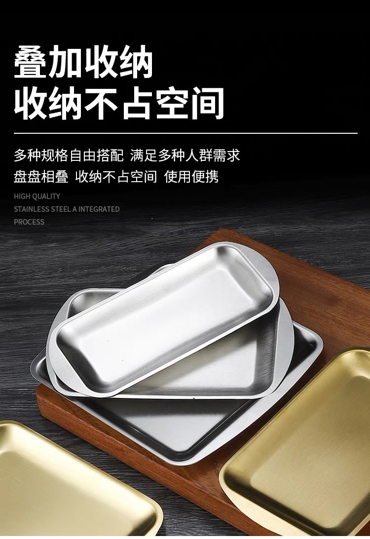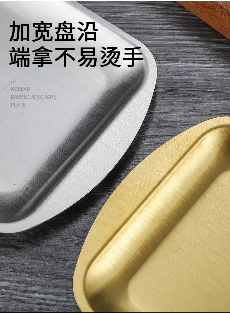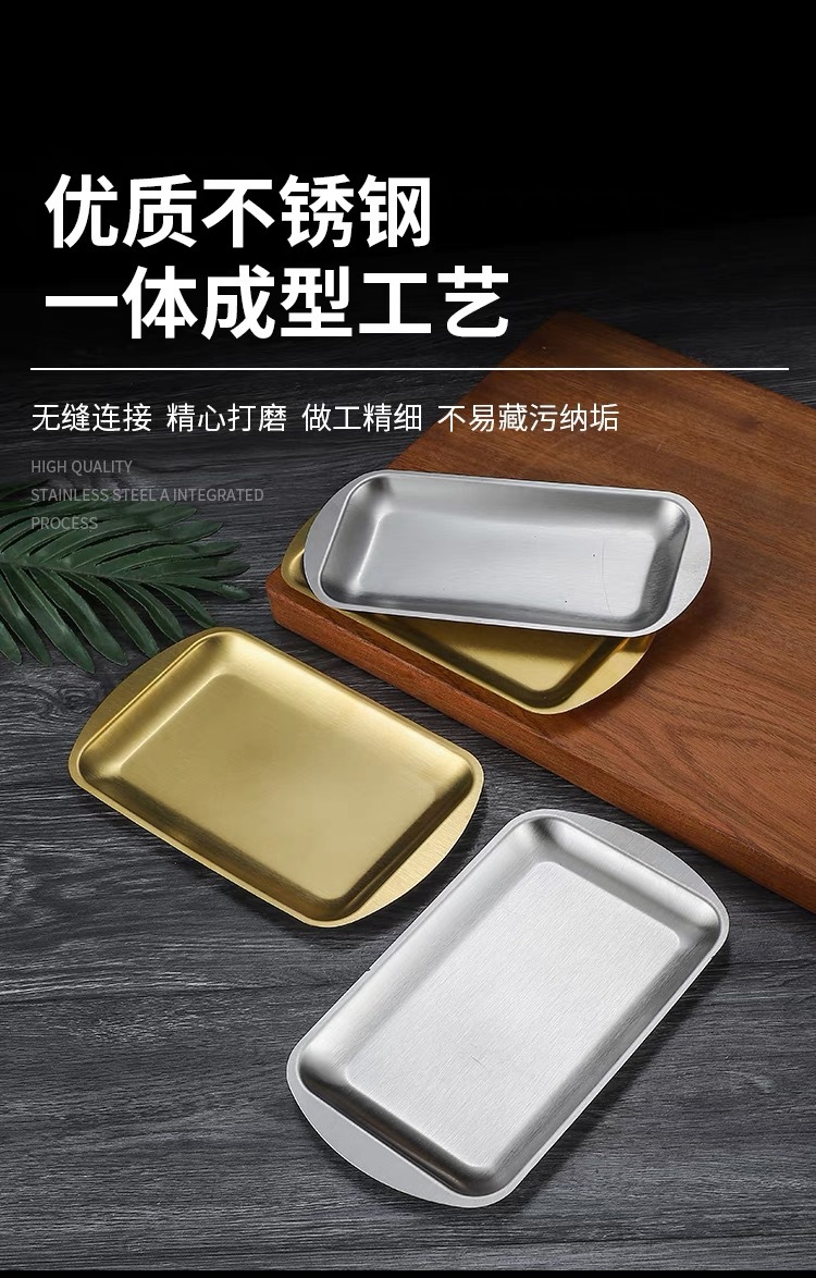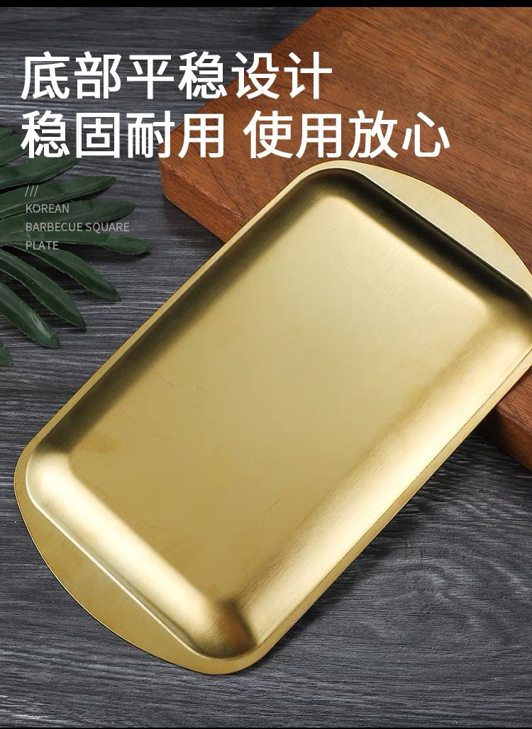 304 스테인레스 스틸 사각 접시 가정용 직사각형 접시 호텔 레스토랑 황금 간식 식기 접시 바베큐 그릴 접시스토어 가기