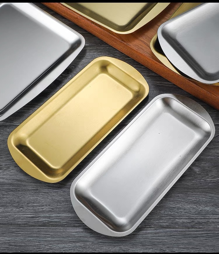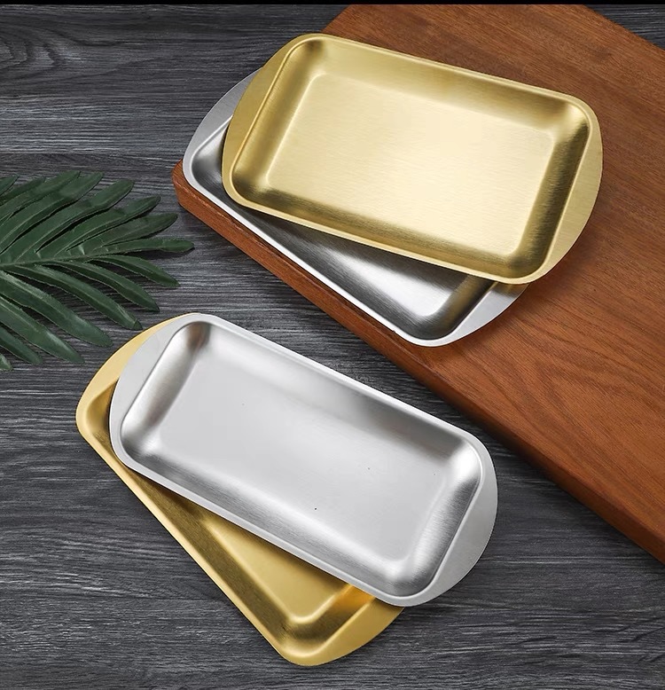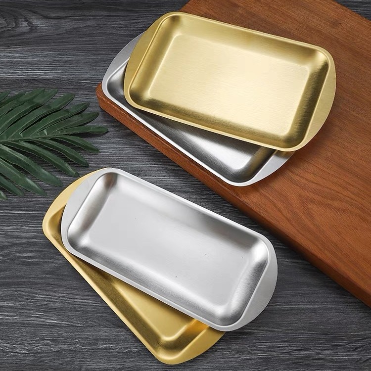 304 스테인레스 스틸 사각 접시 가정용 직사각형 접시 호텔 레스토랑 황금 간식 식기 접시 바베큐 그릴 접시