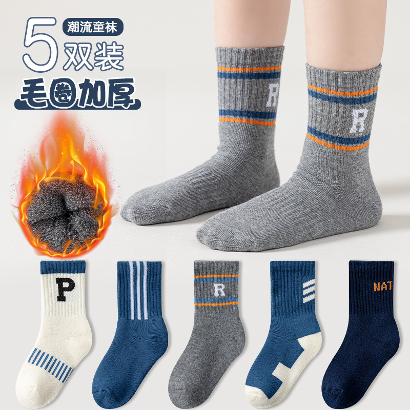 어린이 양말 가을과 겨울 소년 면화 양말 겨울 기모 두꺼운 테리 양말 소녀 따뜻한 봄과 가을 튜브 양말스토어 가기