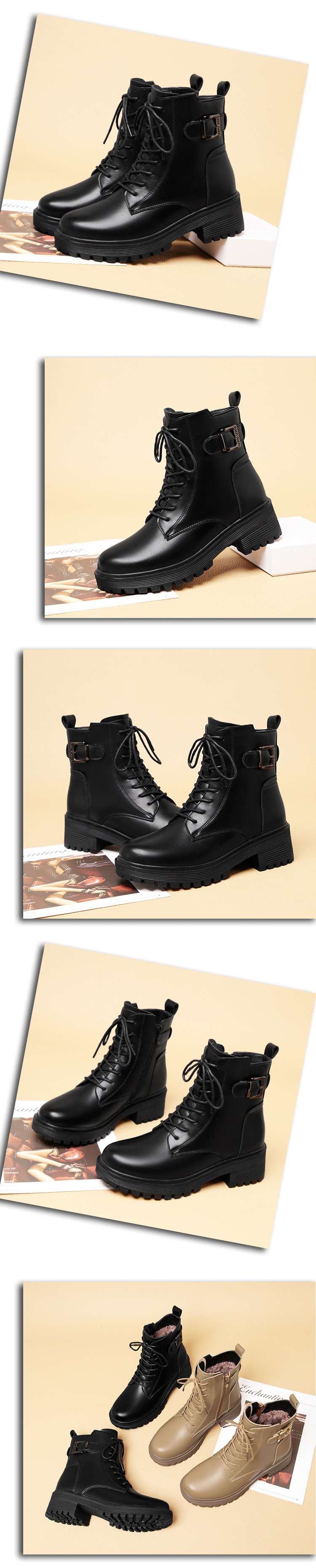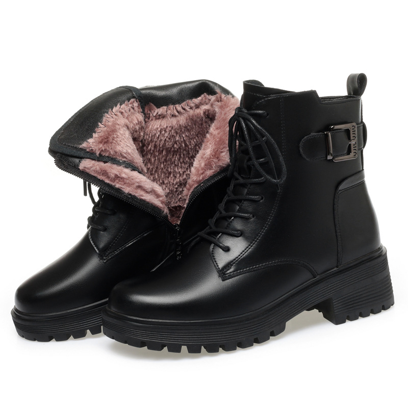 공장 도매 두꺼운 뒤꿈치 마틴 부츠 여성 겨울 기모 신발 2023 새로운 부드러운 가죽 부츠 국경스토어 가기