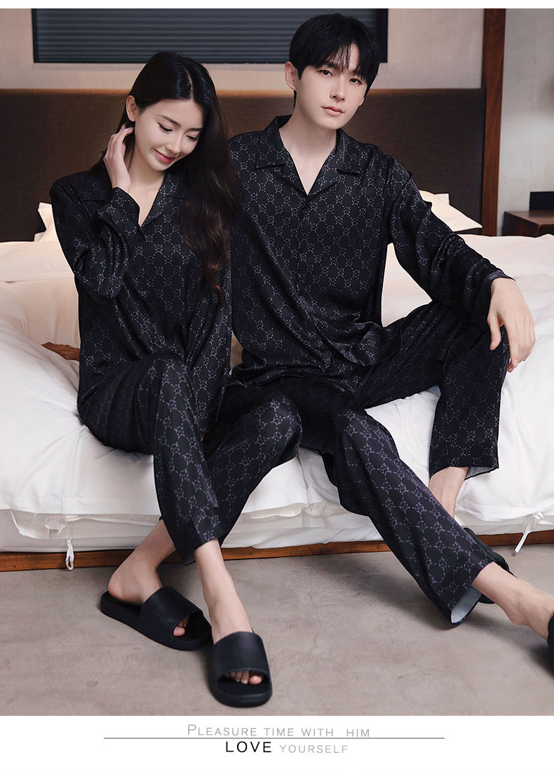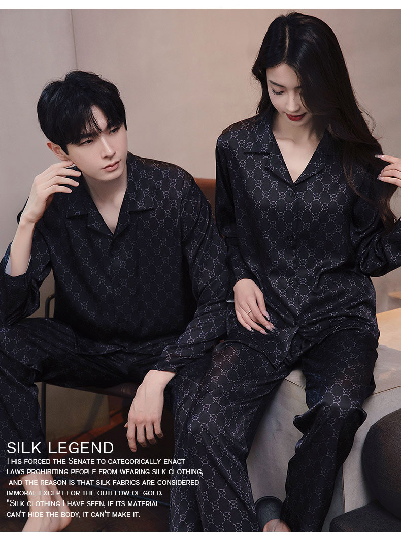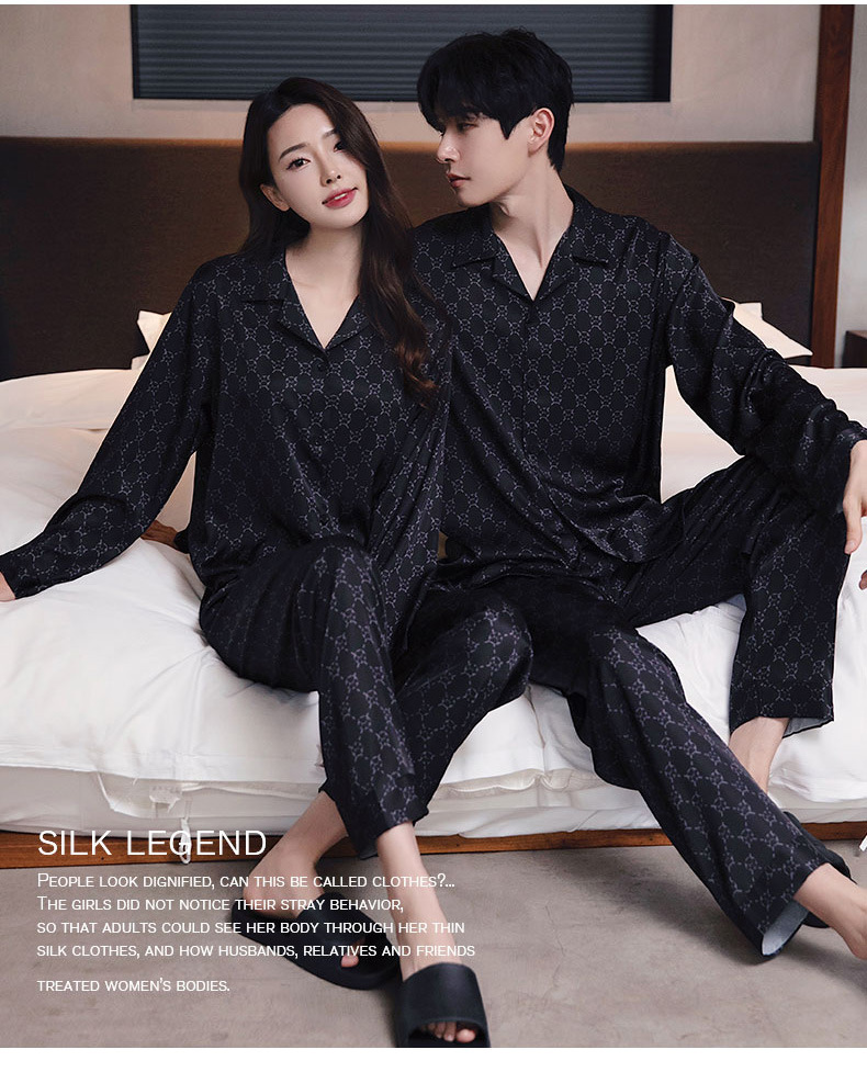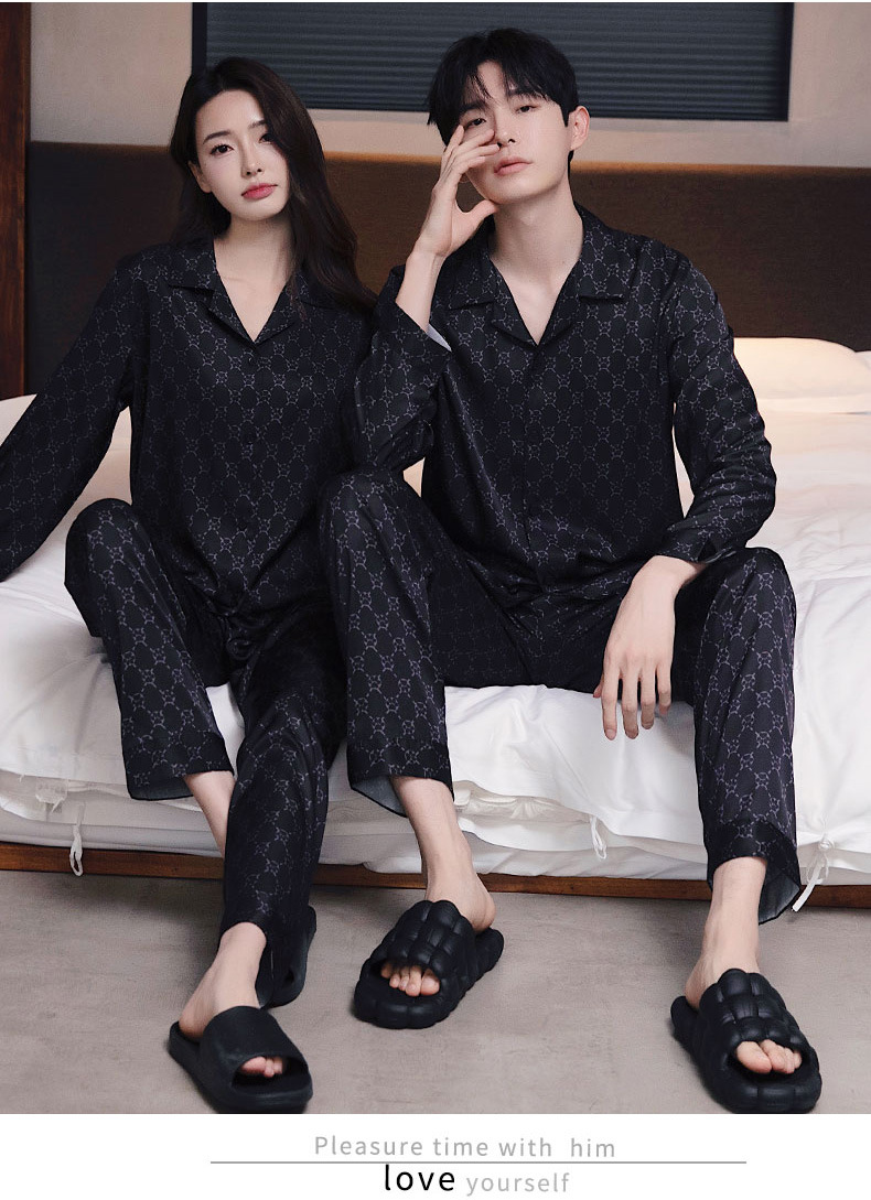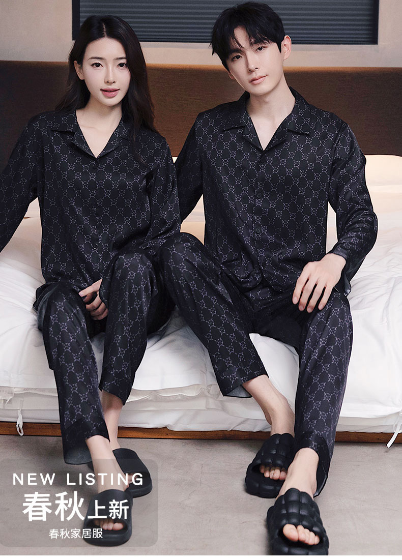 커플 잠옷 남자와 여자 봄과 가을 여름 얼음 실크 긴 소매 하이 엔드 감각 플러스 사이즈 캐주얼 가정 옷 세트 라이브 재고스토어 가기