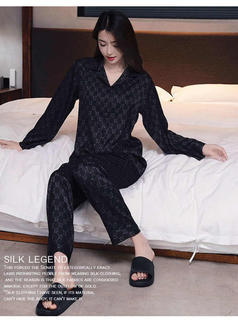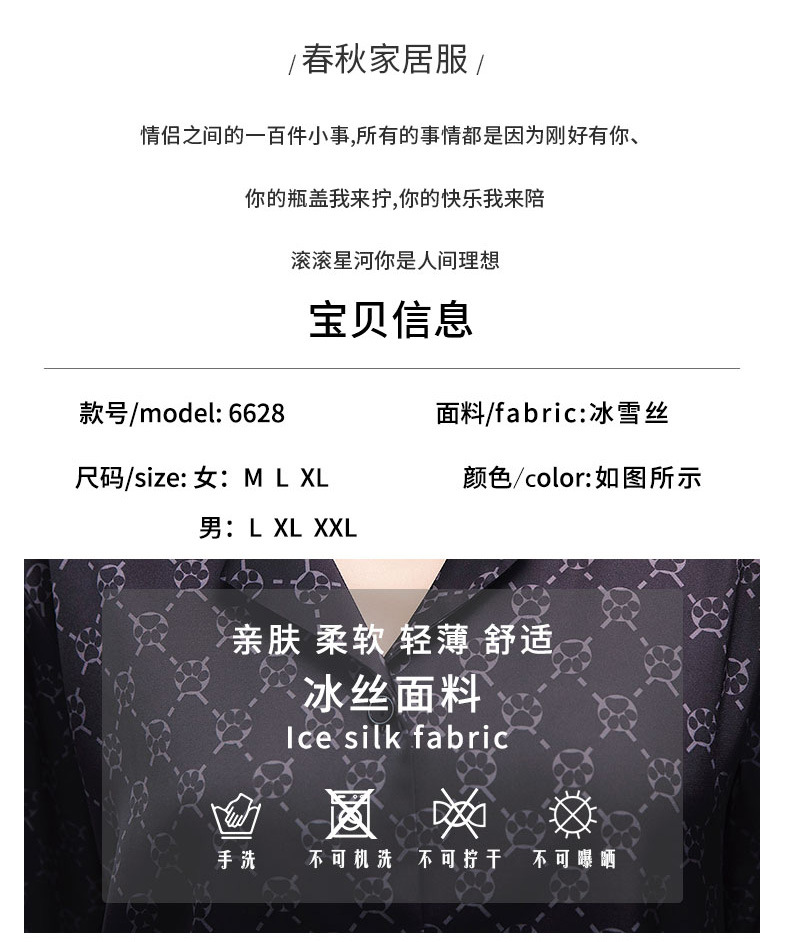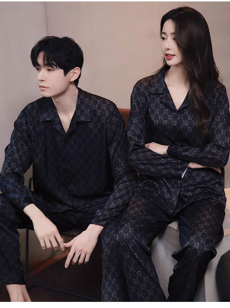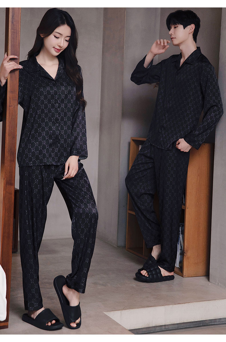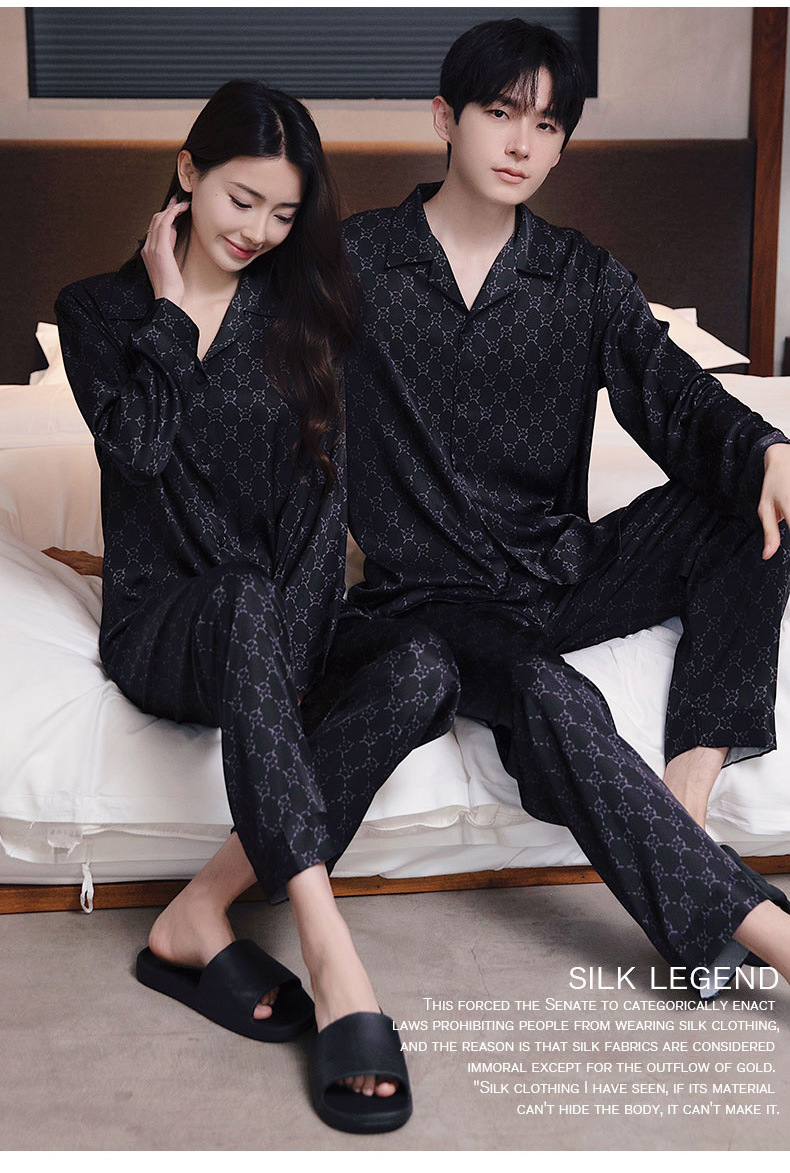 커플 잠옷 남자와 여자 봄과 가을 여름 얼음 실크 긴 소매 하이 엔드 감각 플러스 사이즈 캐주얼 가정 옷 세트 라이브 재고스토어 가기