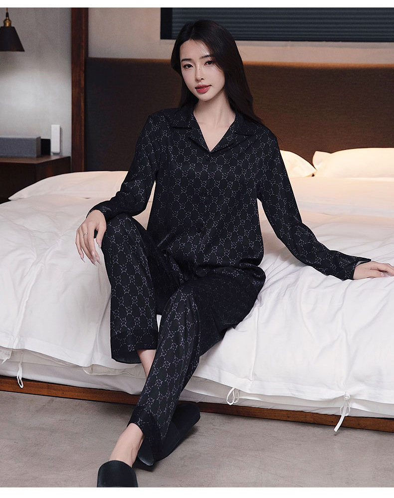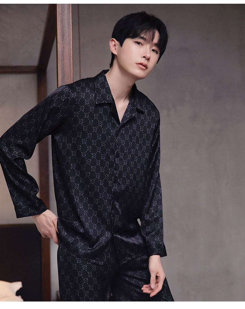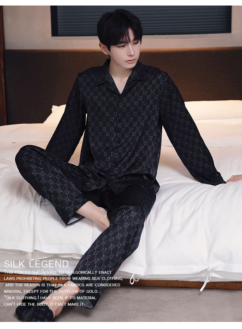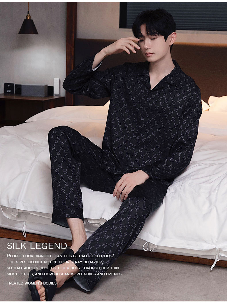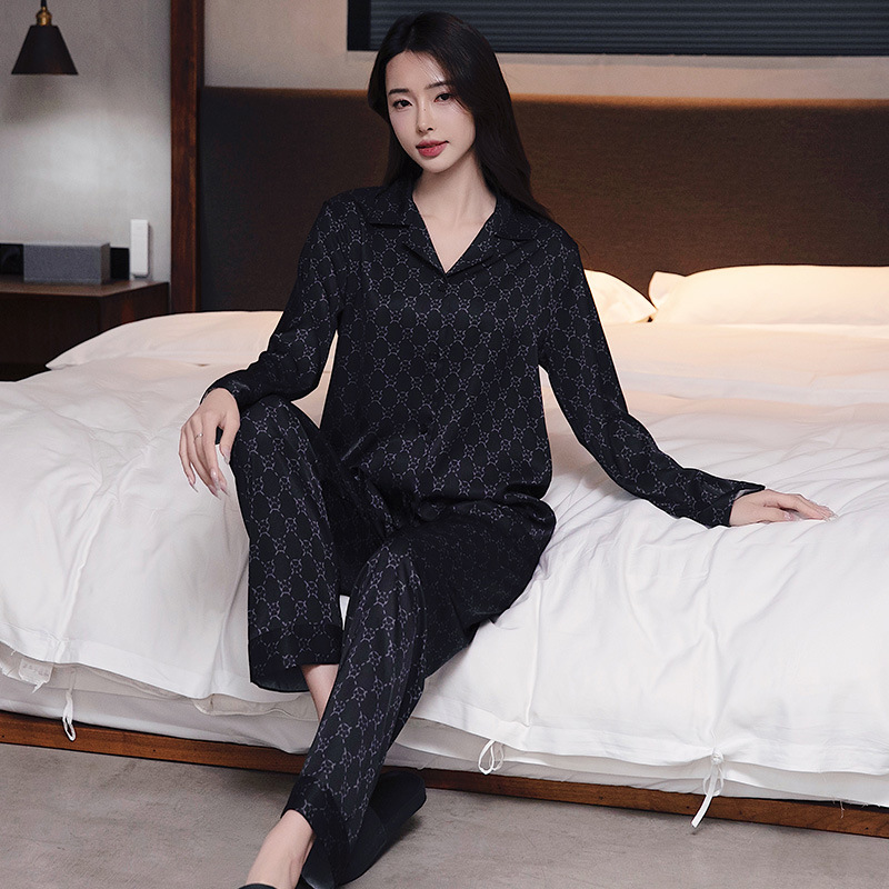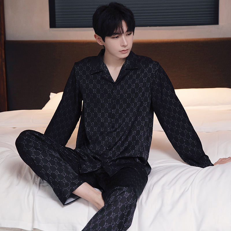 커플 잠옷 남자와 여자 봄과 가을 여름 얼음 실크 긴 소매 하이 엔드 감각 플러스 사이즈 캐주얼 가정 옷 세트 라이브 재고스토어 가기