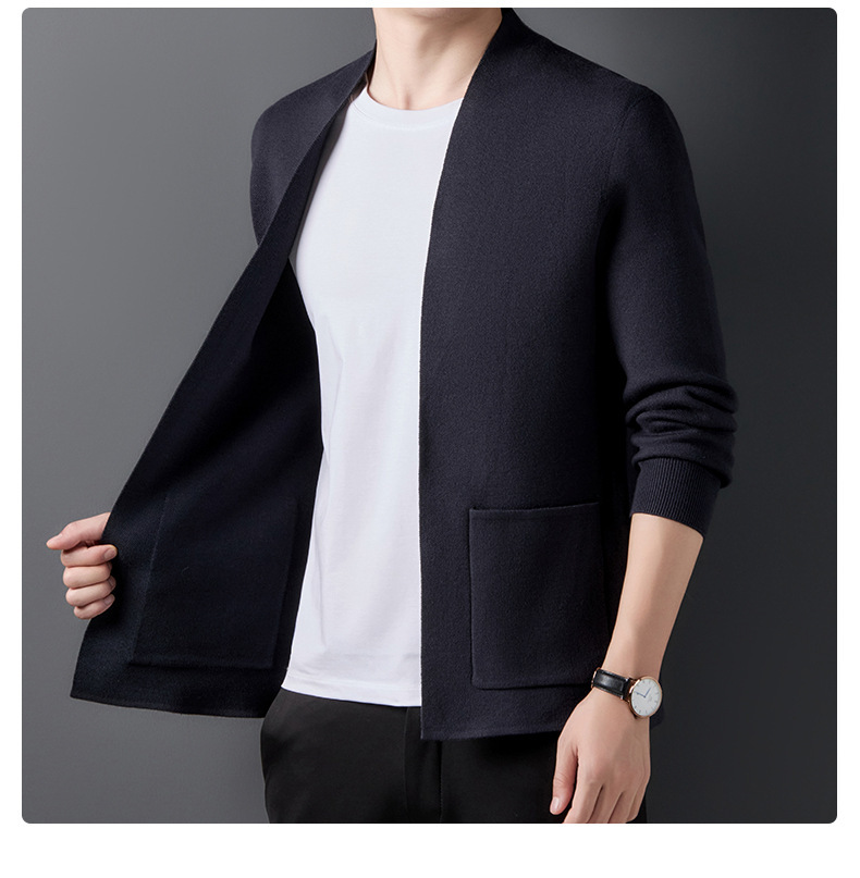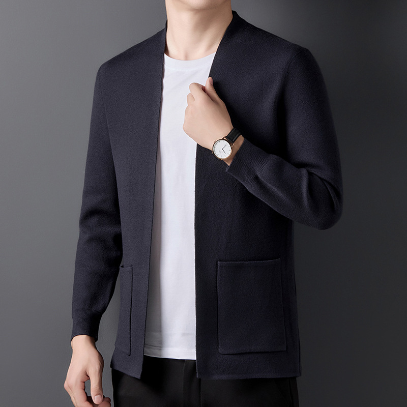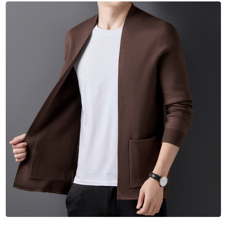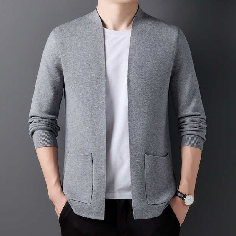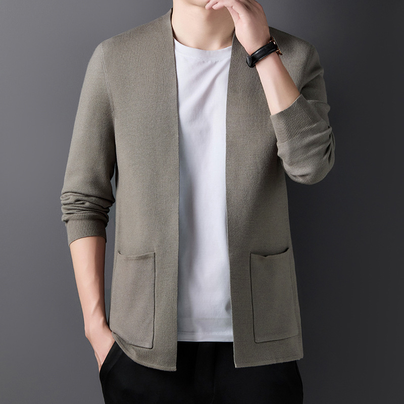 2023 봄과 가을 새로운 니트 가디건 남성용 올매치 씬 홍콩 스타일 솔리드 컬러 버클 니트 가디건 루즈한 재킷