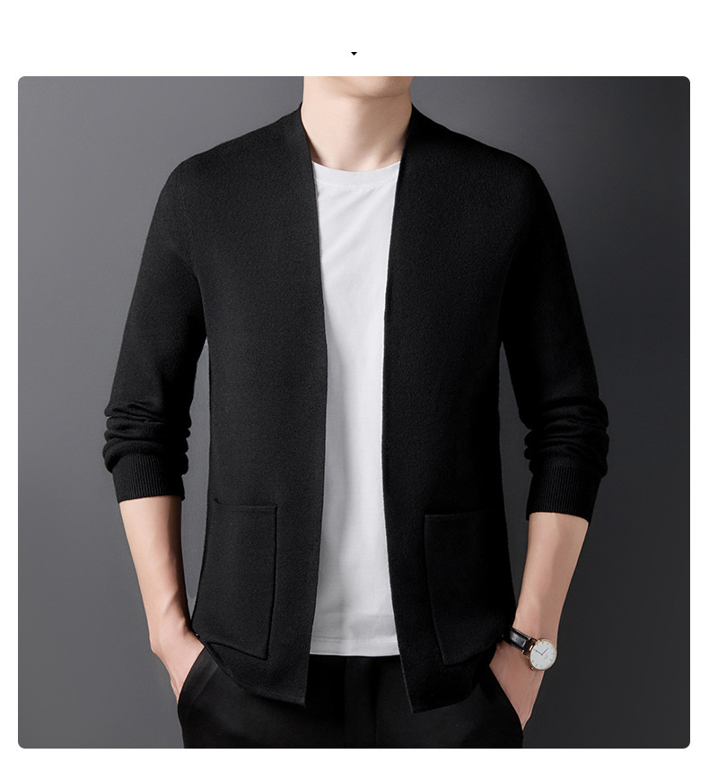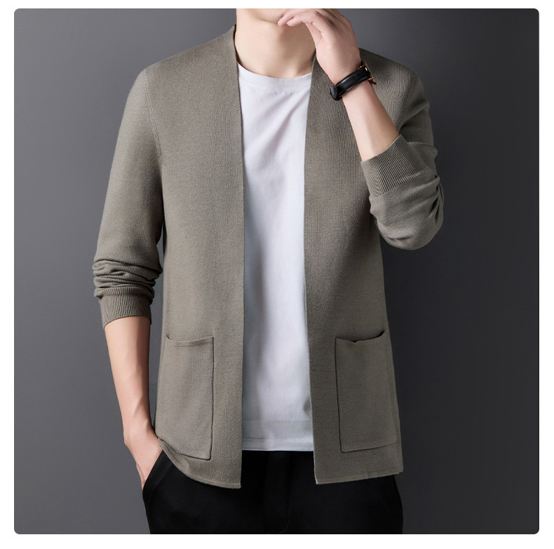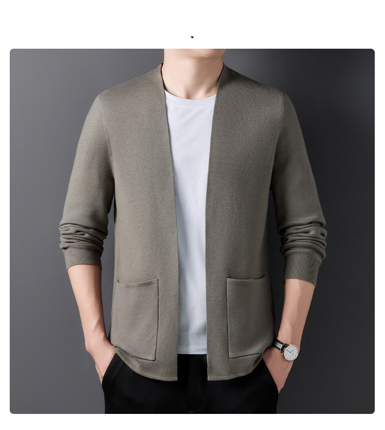 2023春秋新款针织开衫男士百搭薄款港风纯色无扣针织开衫宽松外套