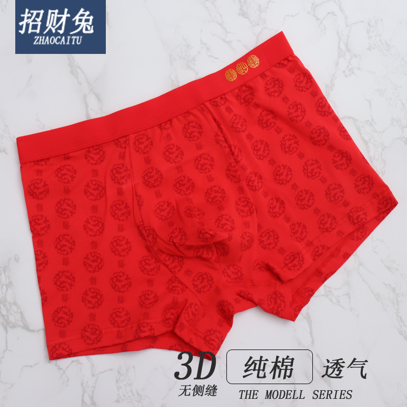Modelian 면화 50 남자 빨간 속옷 3D 복서 속옷 통기성 복서 새해 반바지 제조 업체 도매