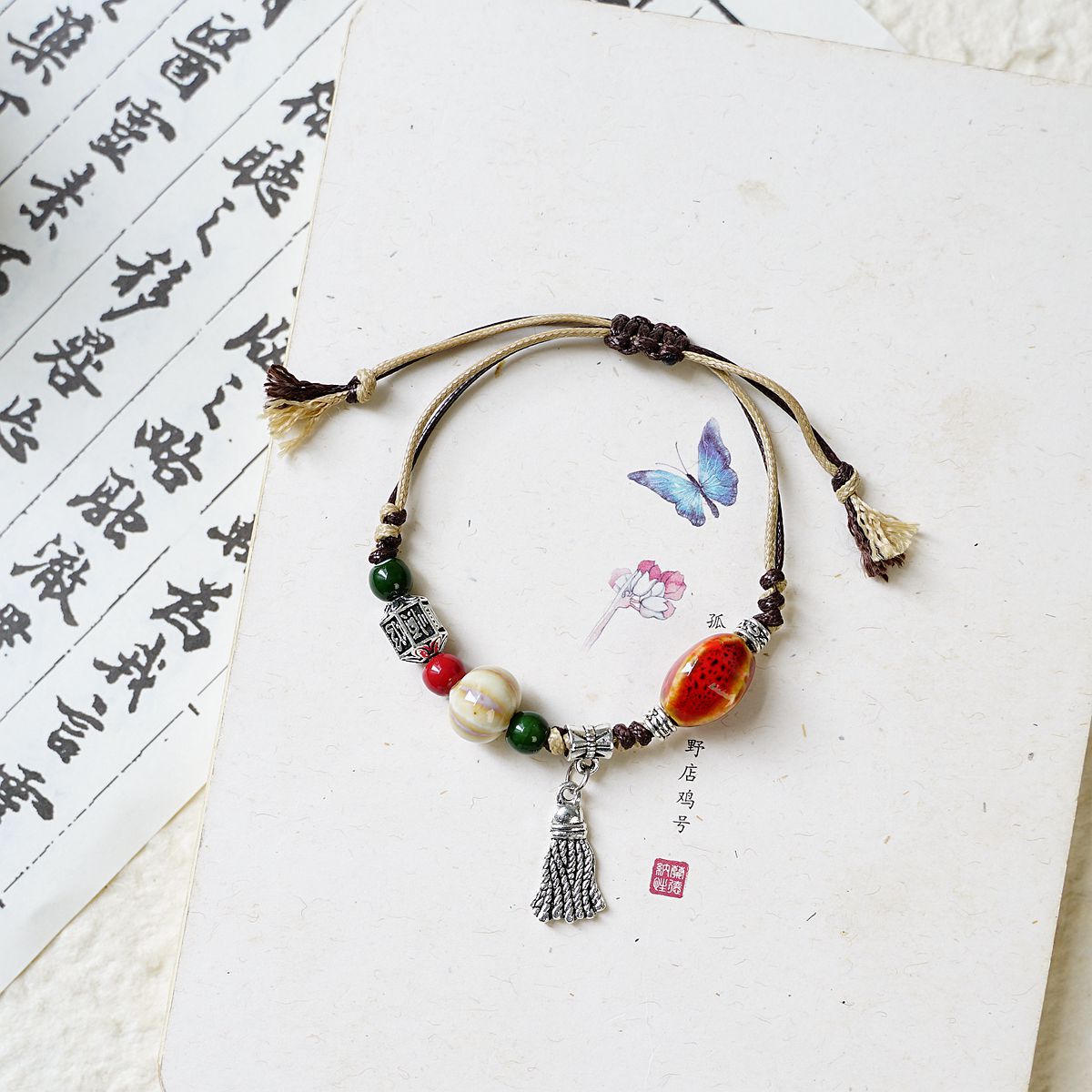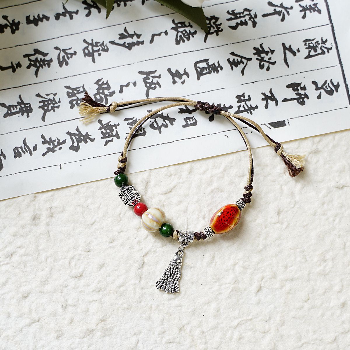틈새 디자인 새로운 중국 세라믹 안전 버클 드로우 스트링 팔찌 여자 친구 핸드 로프 도매 복고풍 보석 국가 스타일