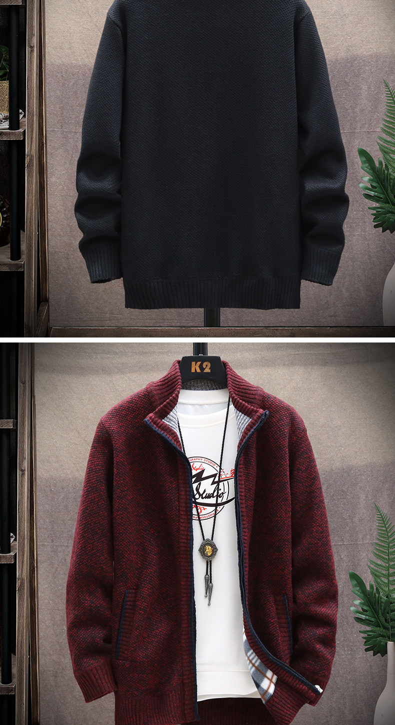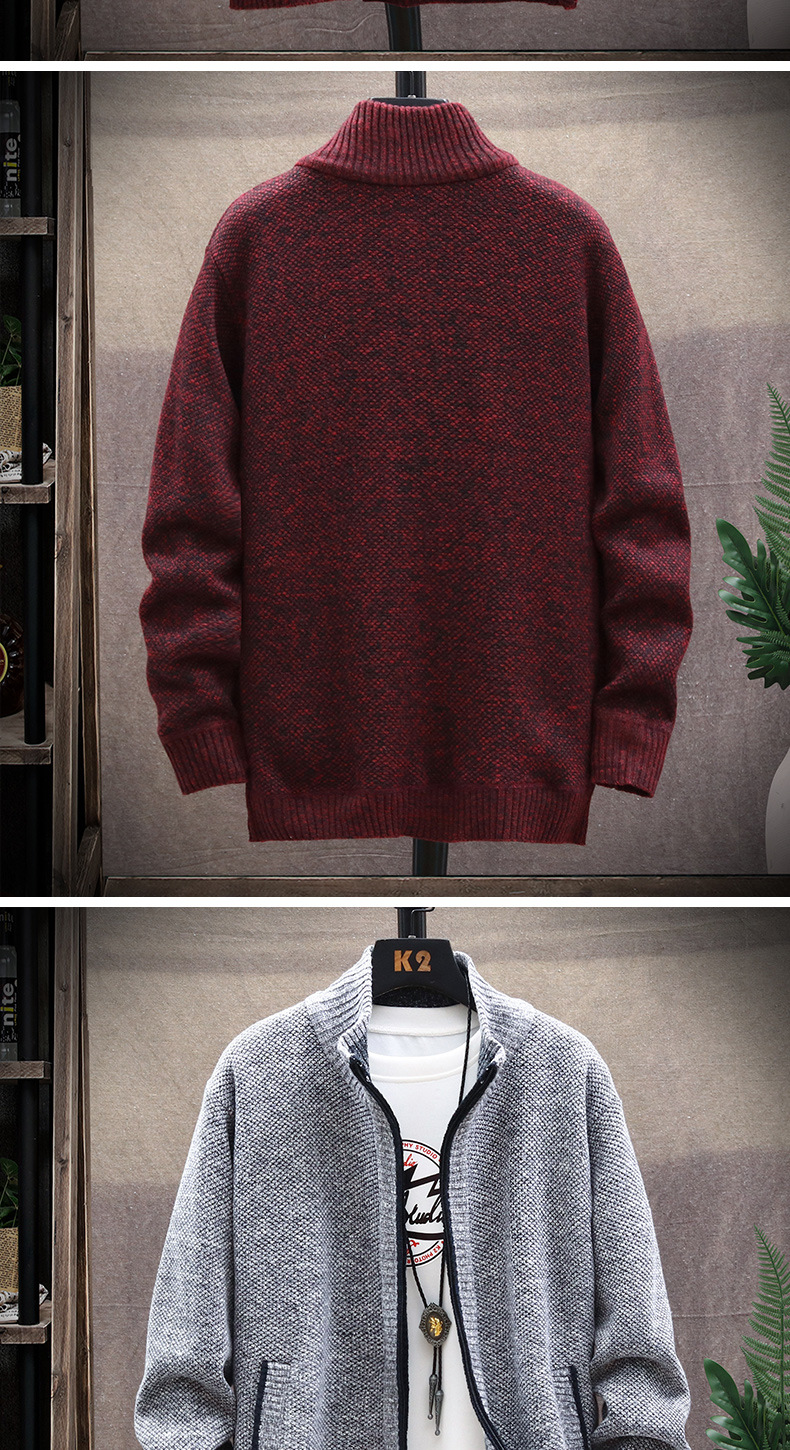 런닝 볼륨 23 가을과 겨울 일본 기모 플러스 사이즈 대외 무역 스웨터 코트 스탠드 칼라 카디건 캐주얼 스웨터 남성용스토어 가기