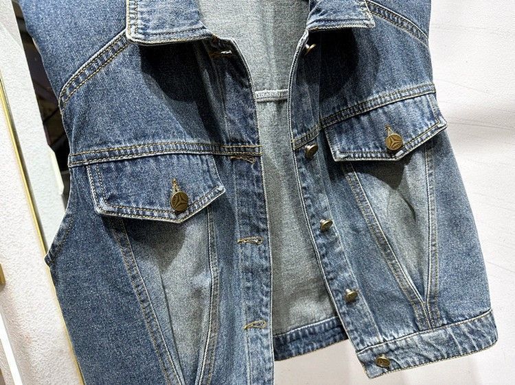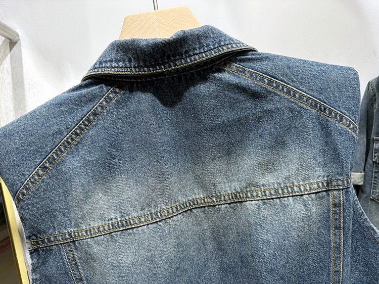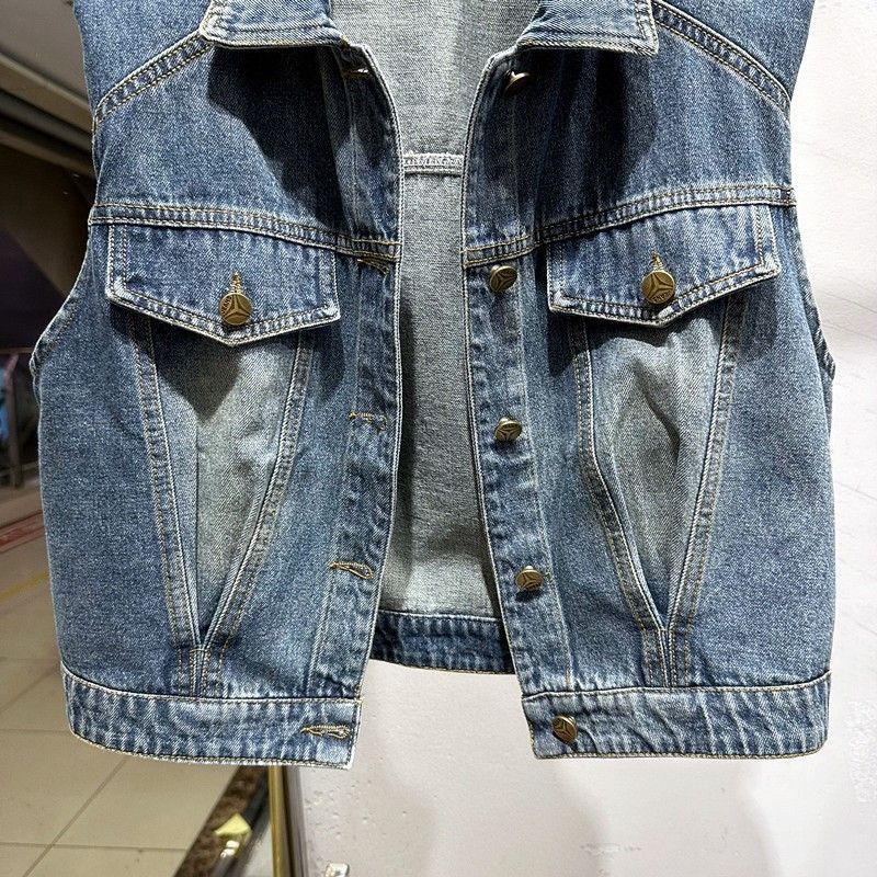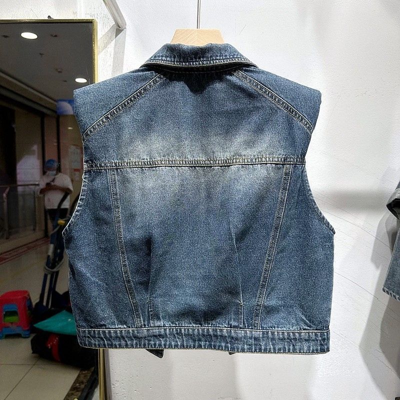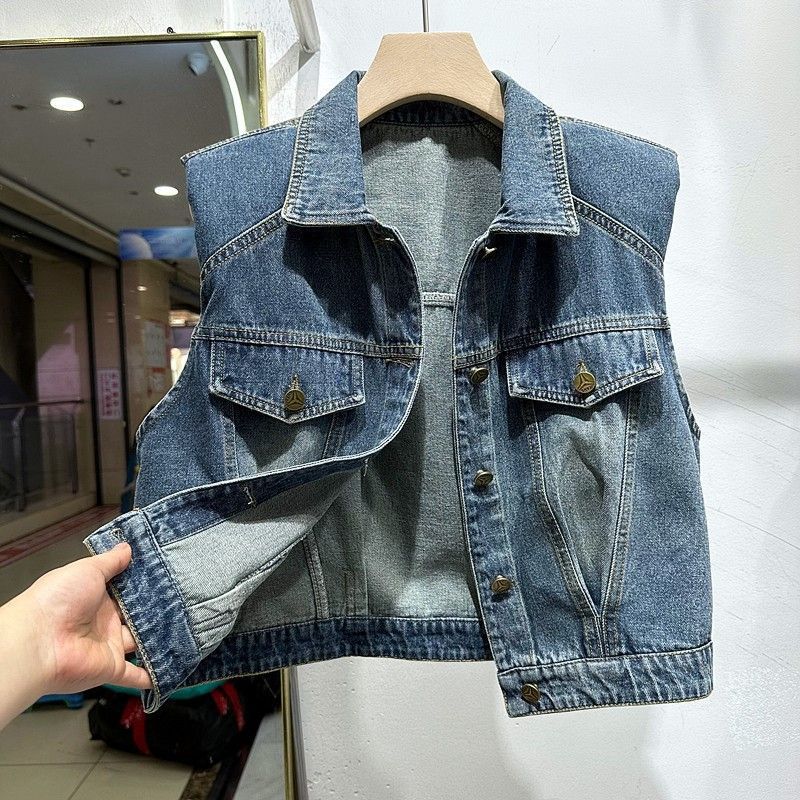 2023 이른 가을 여자의 짧은 조끼 한국어 느슨한 슬리밍 조끼 옷깃 디자인 감각 데님 민소매 조끼스토어 가기