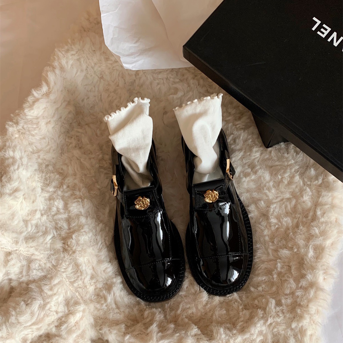 재고 포도 어머니 미스 버드 ~ 기질 동백 라운드 헤드 버클 메리 제인 가죽 신발 여성
