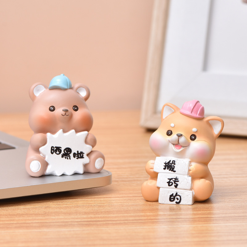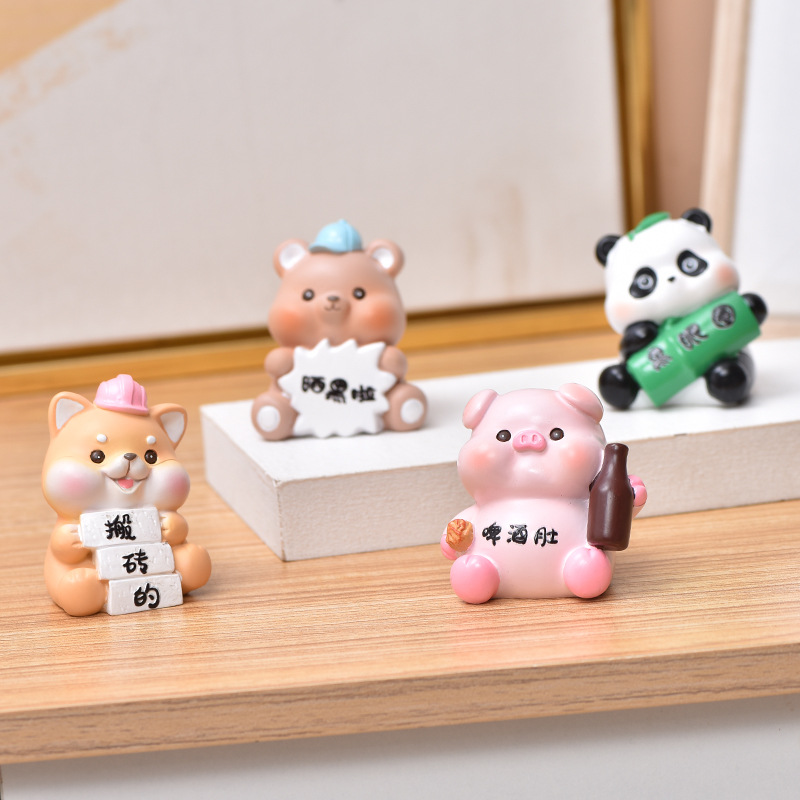 현대 귀여운 만화 동물 데스크탑 장식품 도매 귀여운 미니 인형 자동차 인테리어 장식 생일 선물