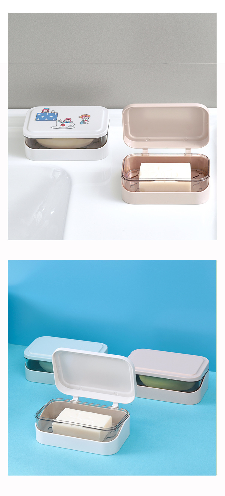 뚜껑이있는 플라스틱 비누 상자 가정용 화장실 비누 상자 비 정체 세탁 비누 상자 비 천공 배수 보관함