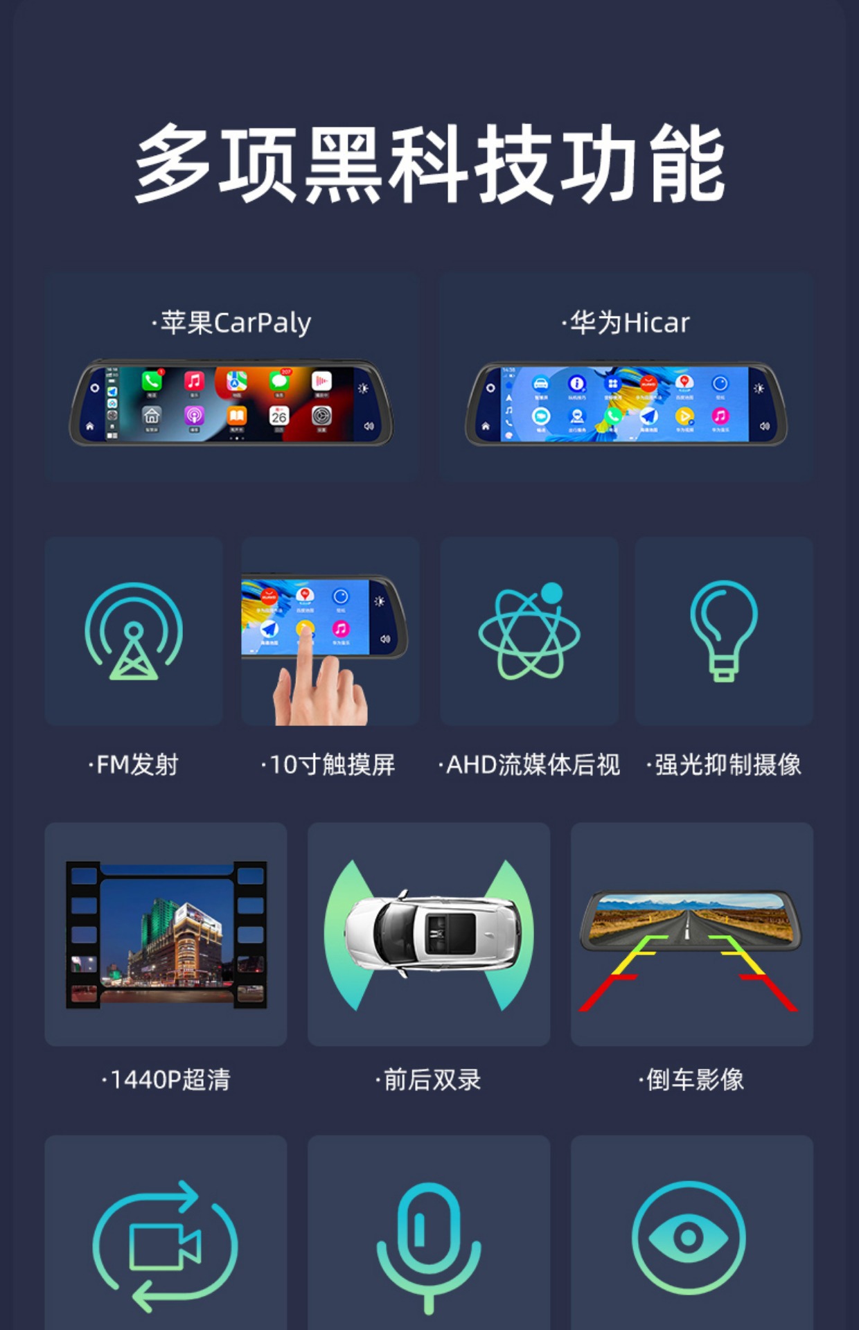 • 10 인치 카플레이 + 2.5K HD + 1080p 듀얼 렌즈