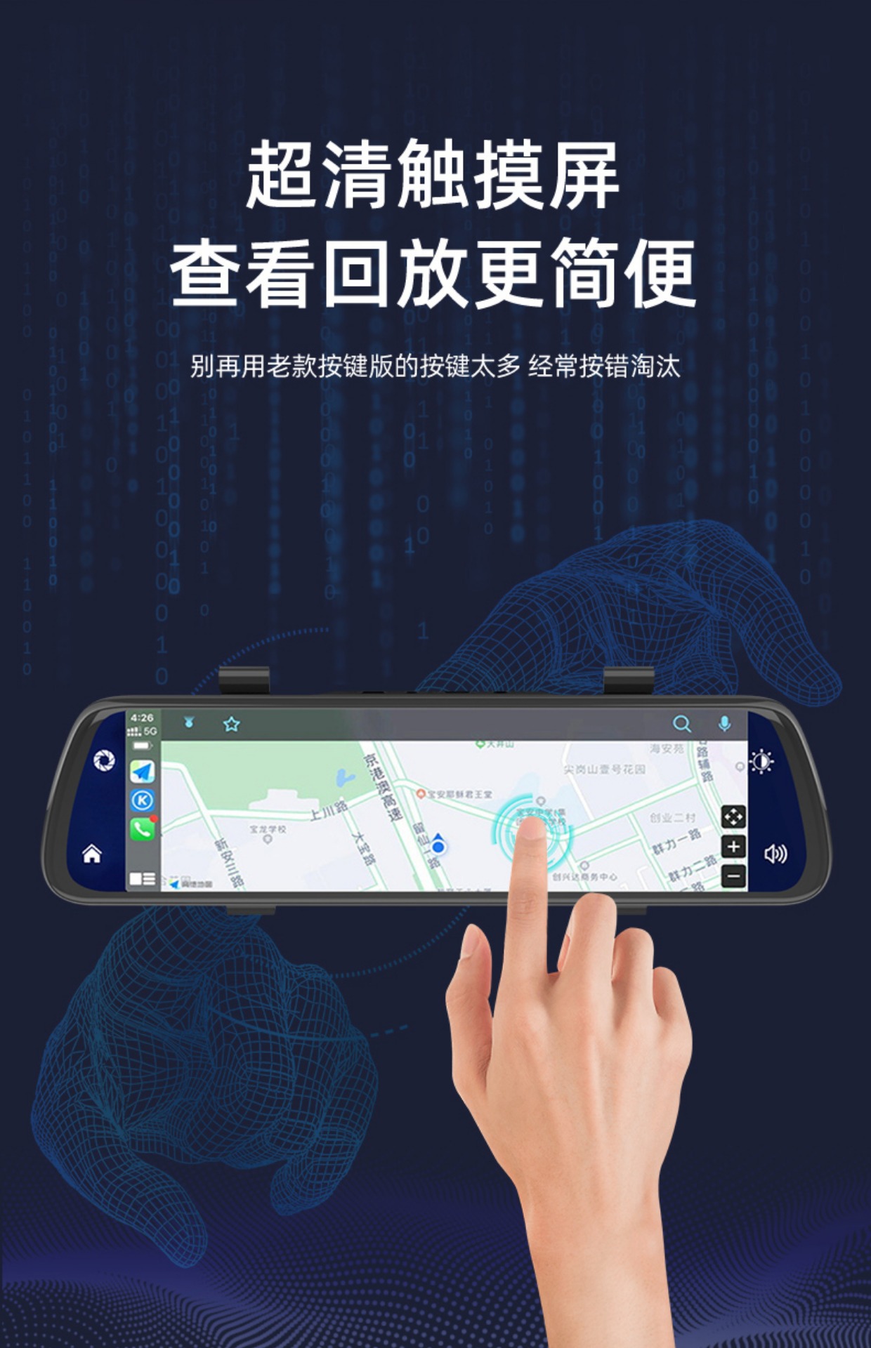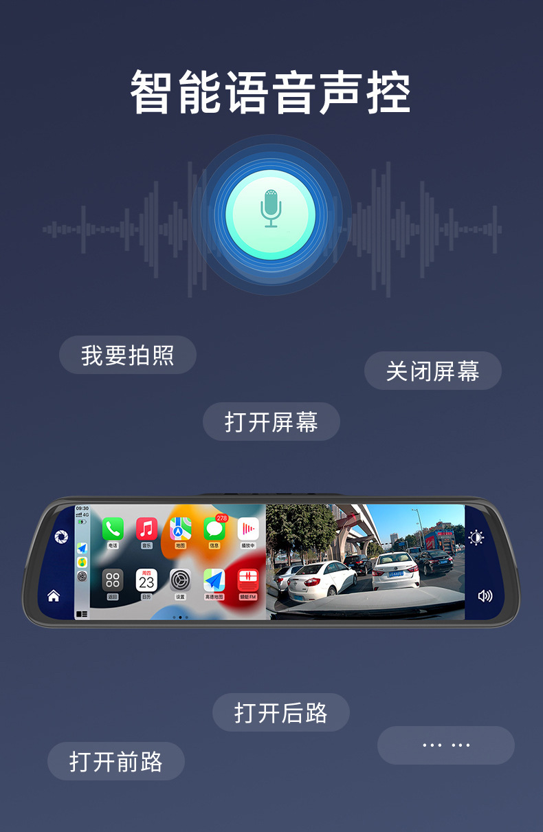 10寸高清触摸屏+前后流媒体记录+智能语音声控