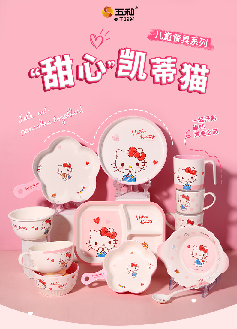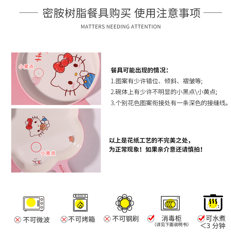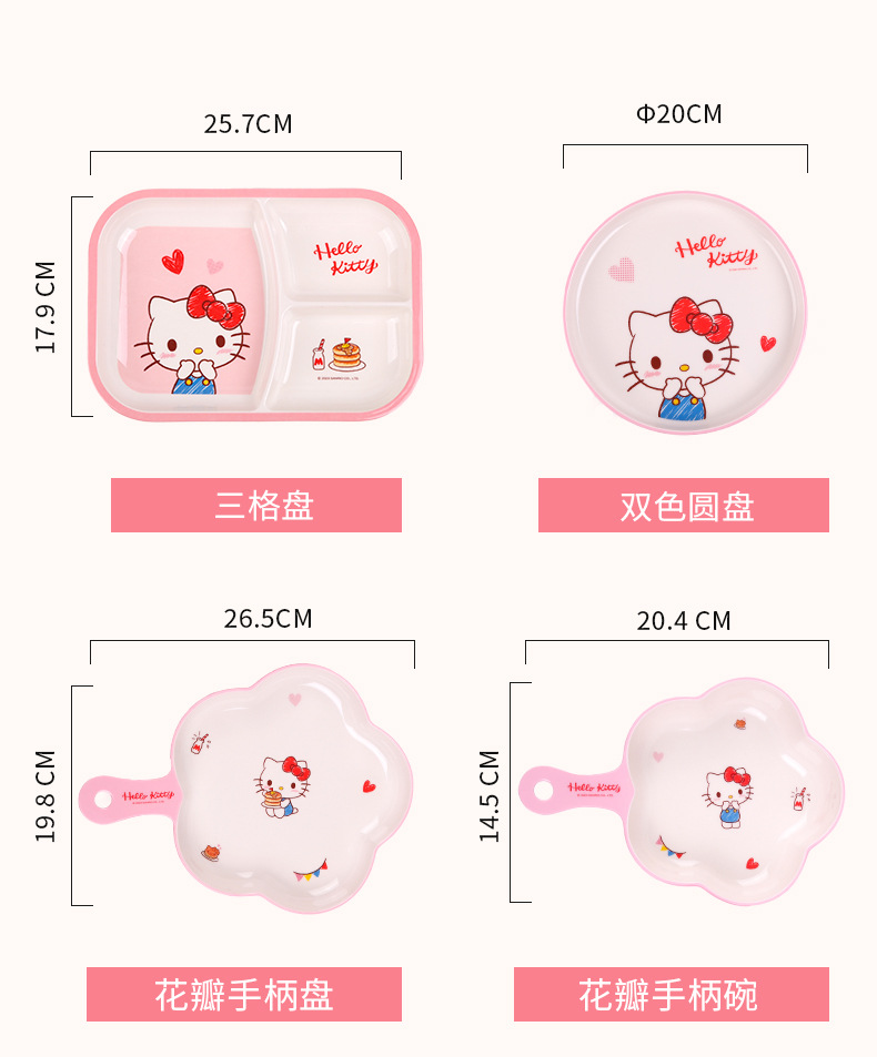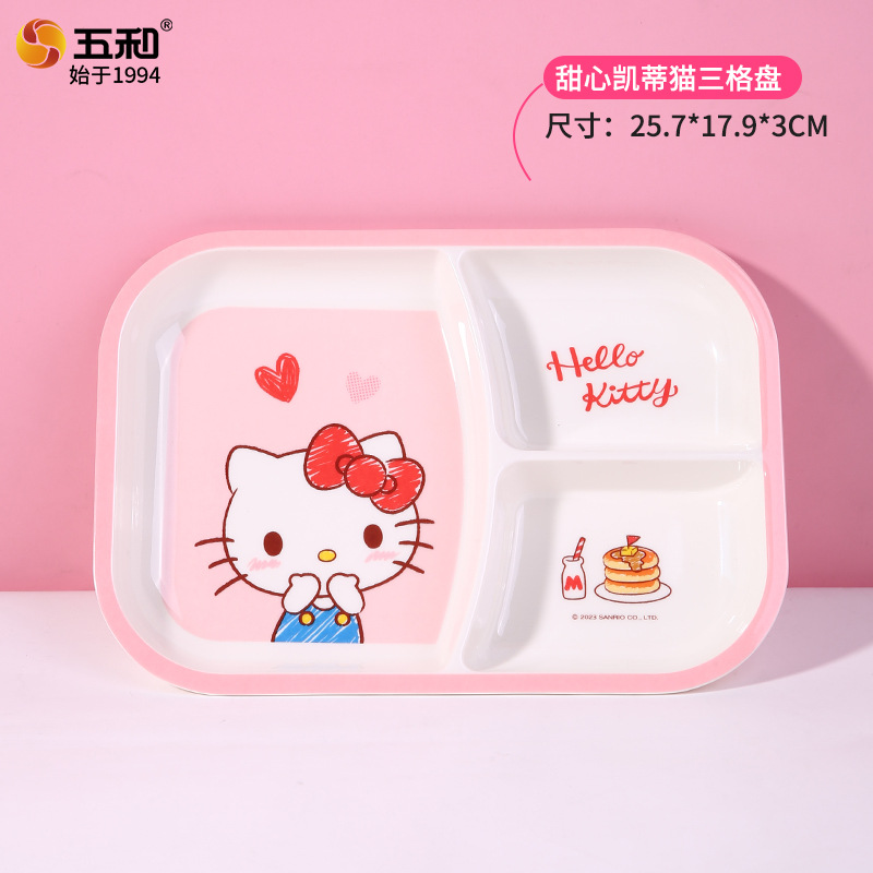 헬로 키티 어린이 식기 홈 만화 귀여운 멜라민 식기 어린이 그릇 산리오 디너 플레이트 보완 그릇 도매