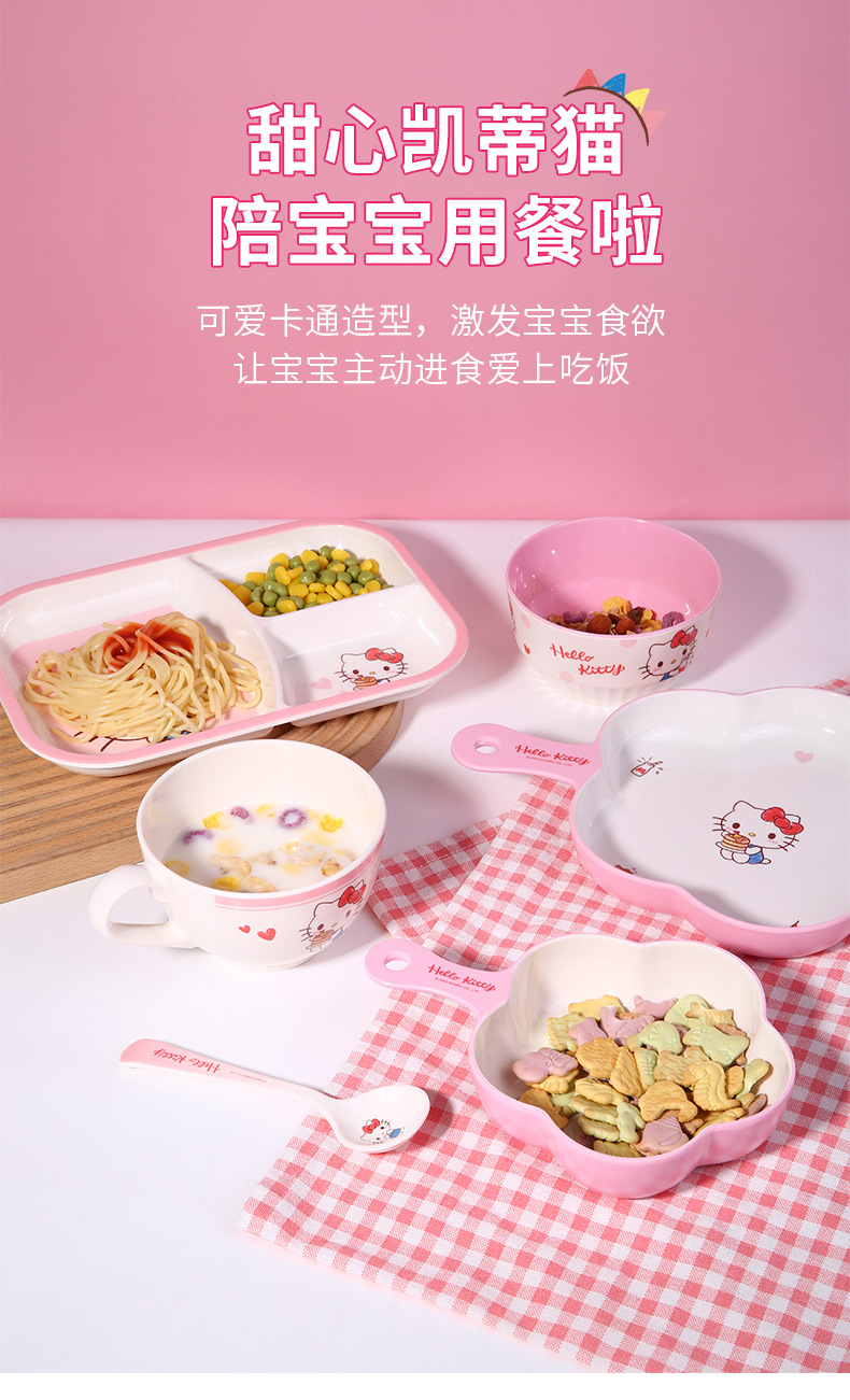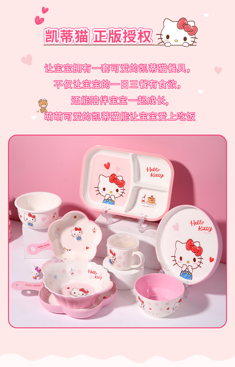 헬로 키티 어린이 식기 홈 만화 귀여운 멜라민 식기 어린이 그릇 산리오 디너 플레이트 보완 그릇 도매스토어 가기