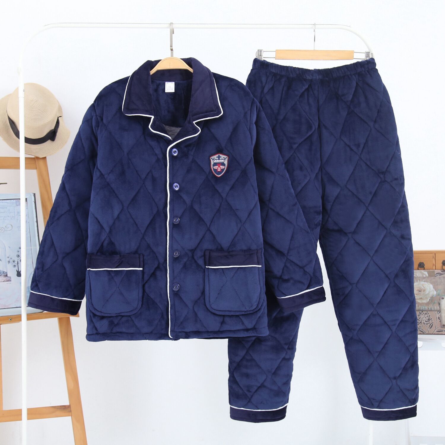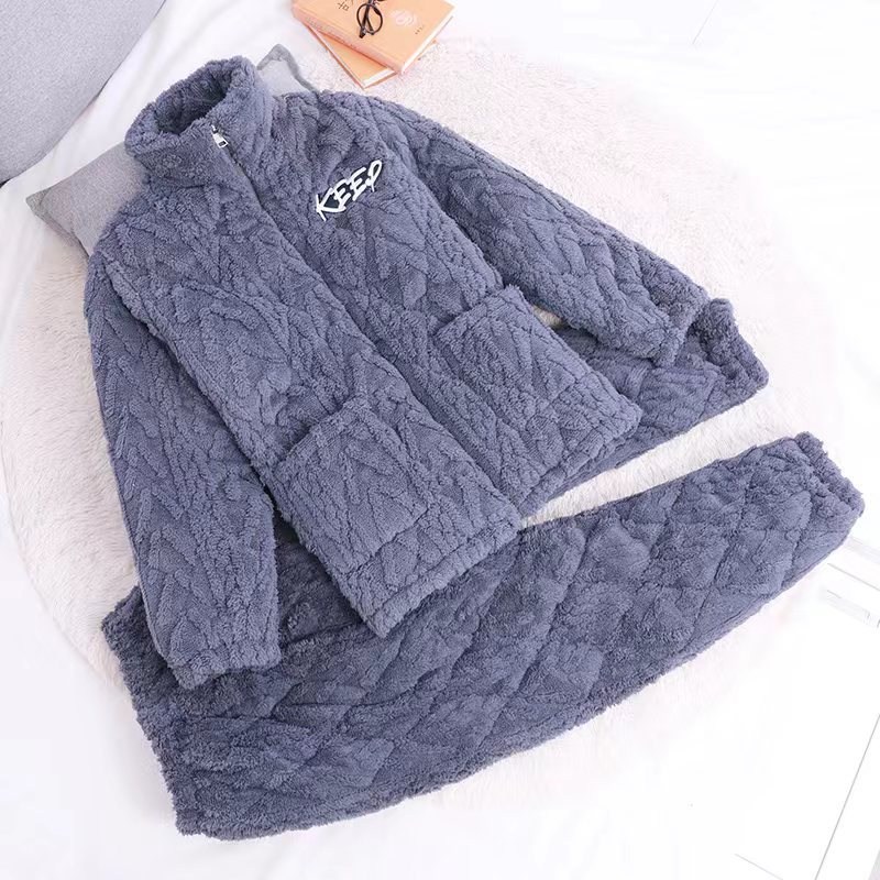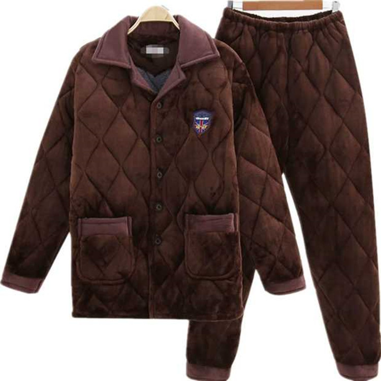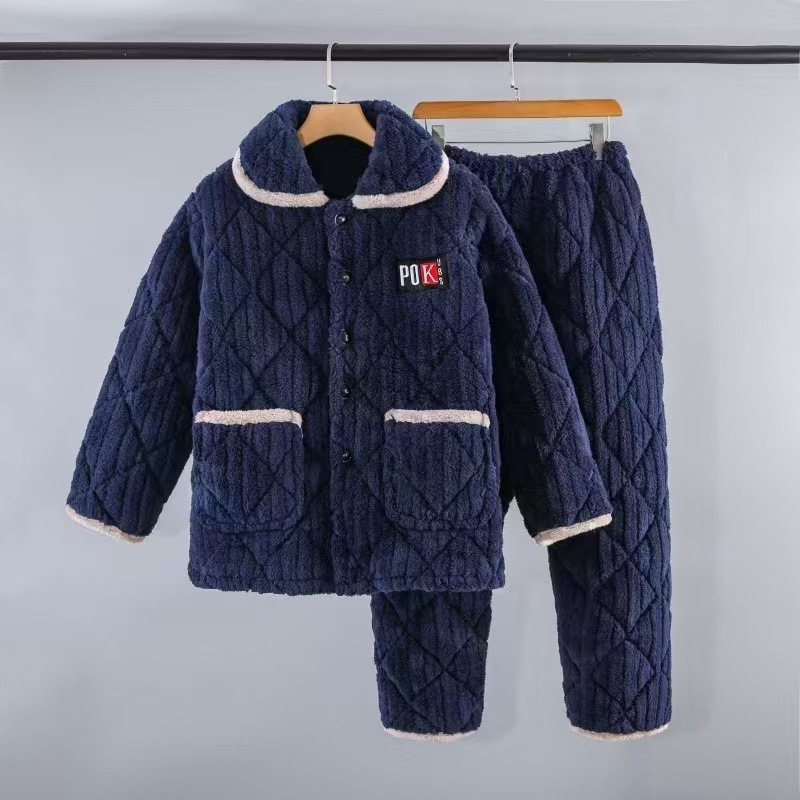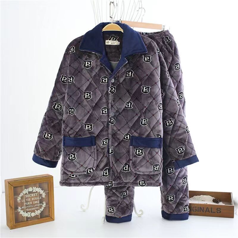 겨울 남성 잠옷 두꺼운 보온 중장년 홈웨어 세트 외출 가능 면 자켓 플란넬 홈 캐주얼
