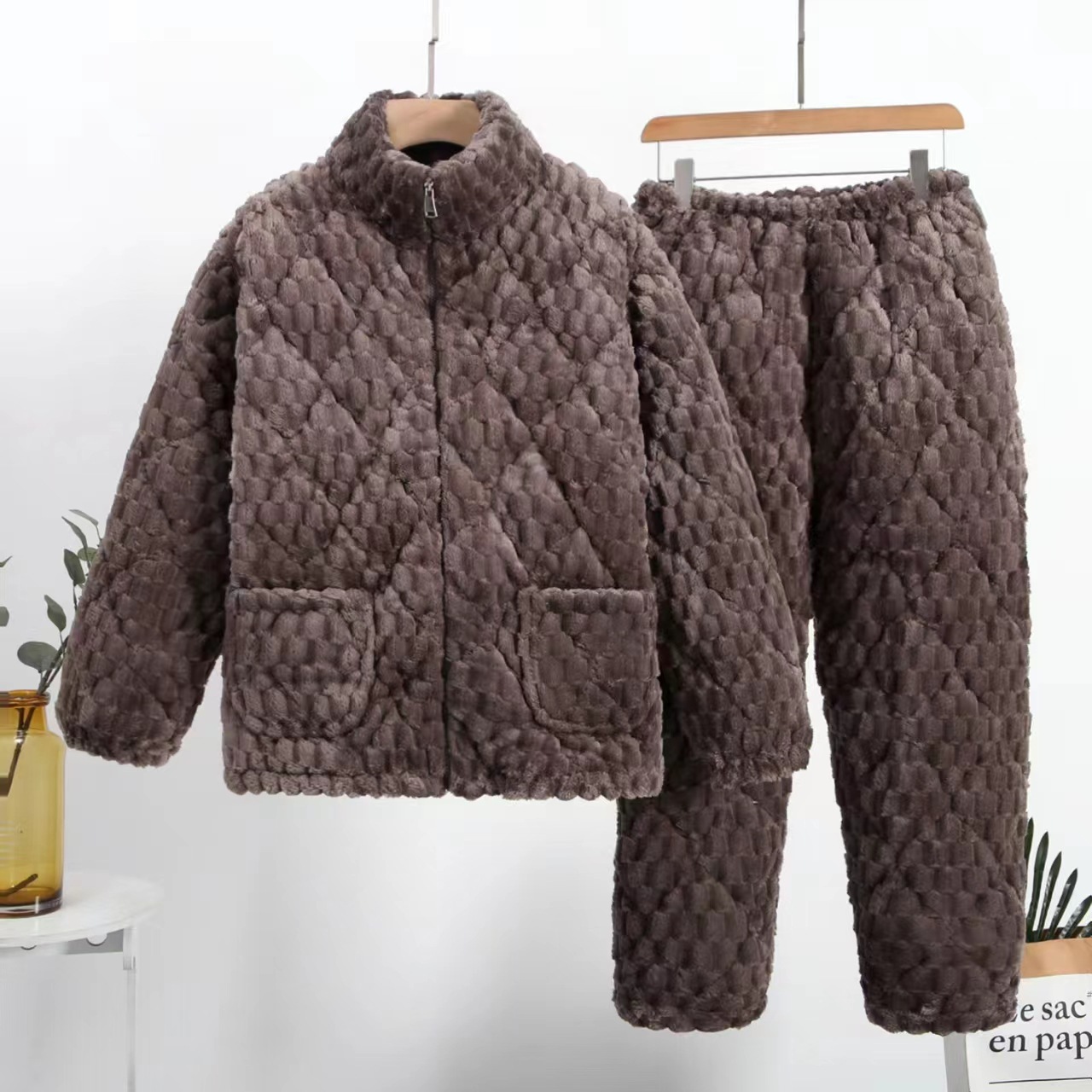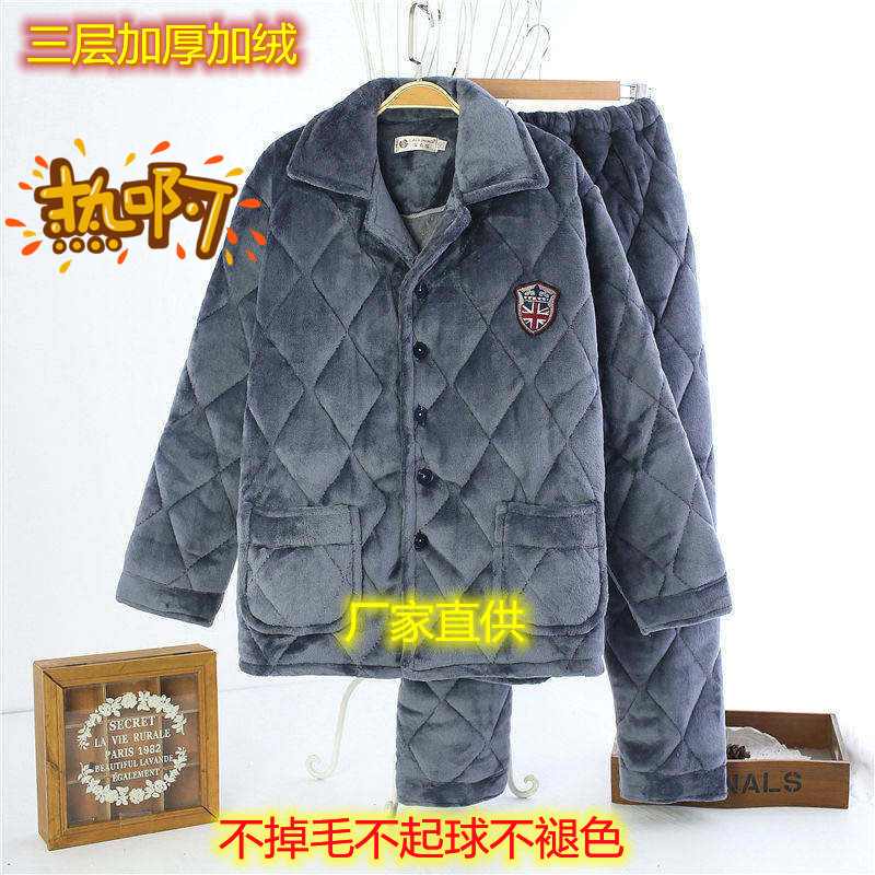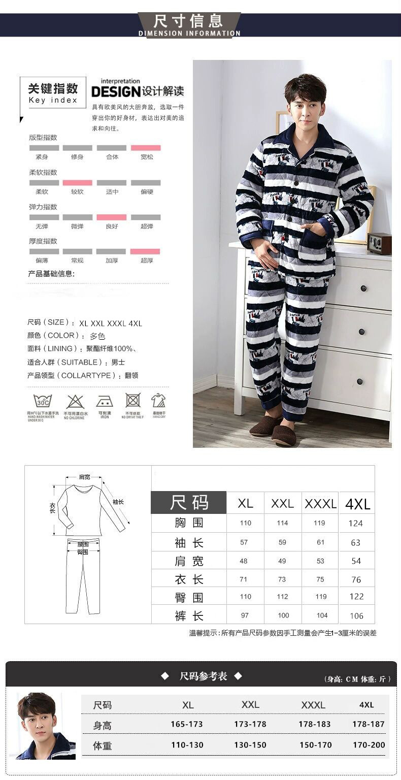 겨울 남성 잠옷 두꺼운 보온 중장년 홈웨어 세트 외출 가능 면 자켓 플란넬 홈 캐주얼스토어 가기