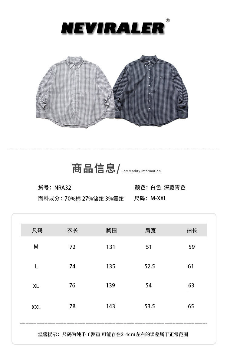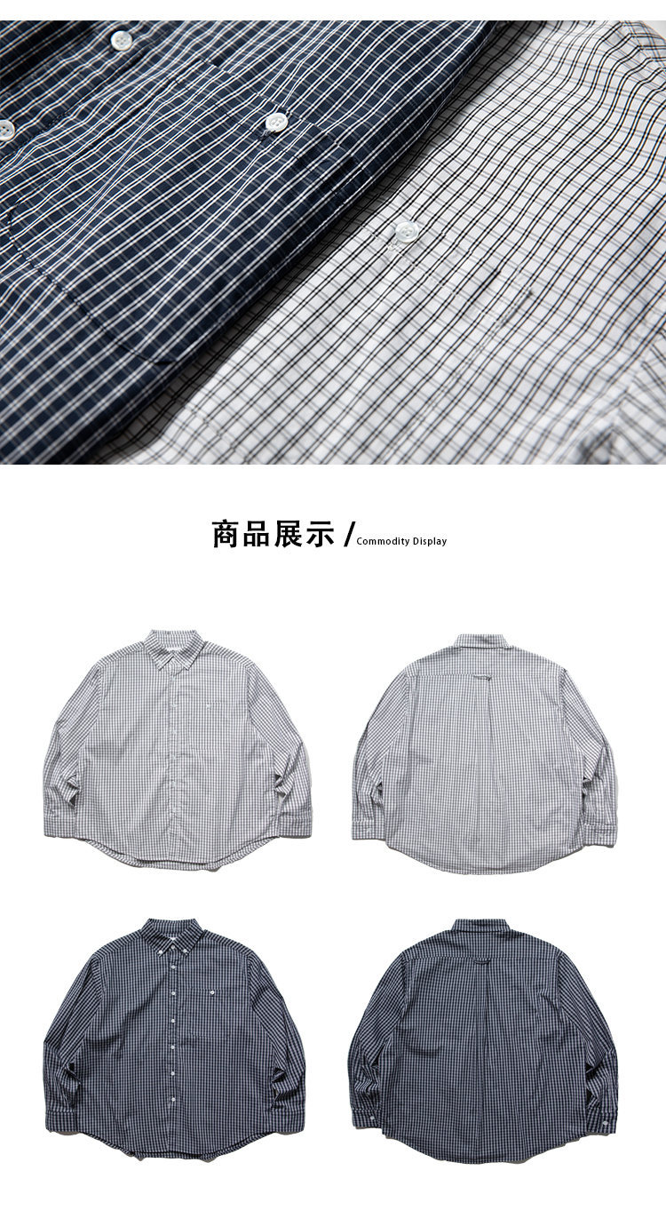 Beijie 남성 미국 패션 브랜드 2025 가을 새로운 작은 격자 무늬 셔츠 실루엣 곡선 밑단 긴팔 셔츠스토어 가기