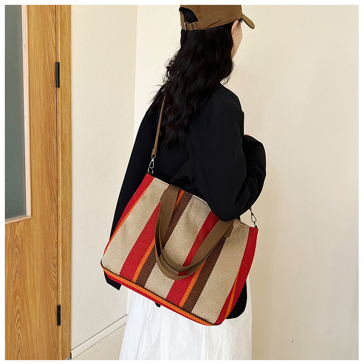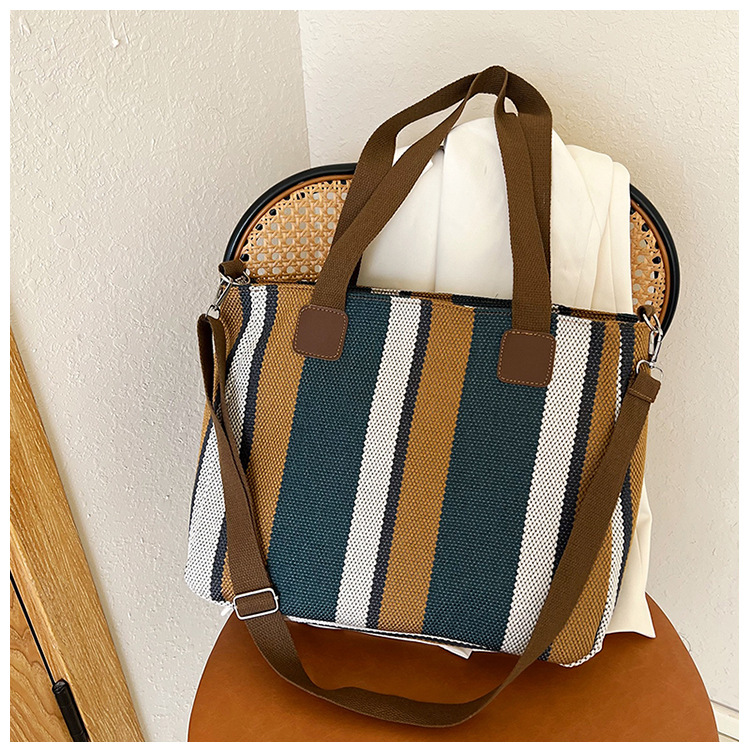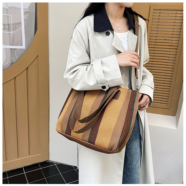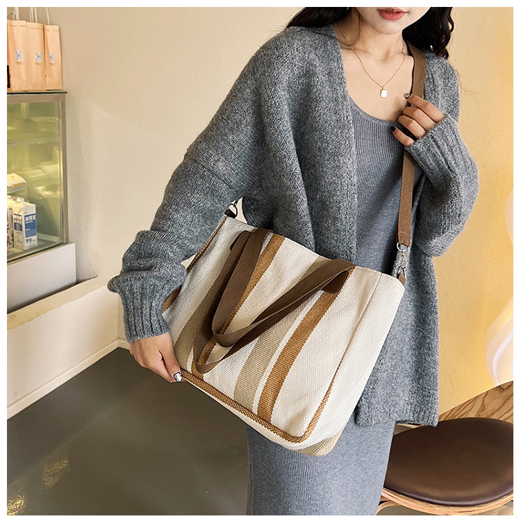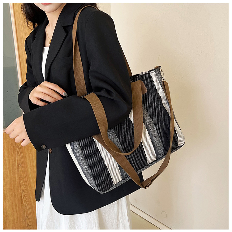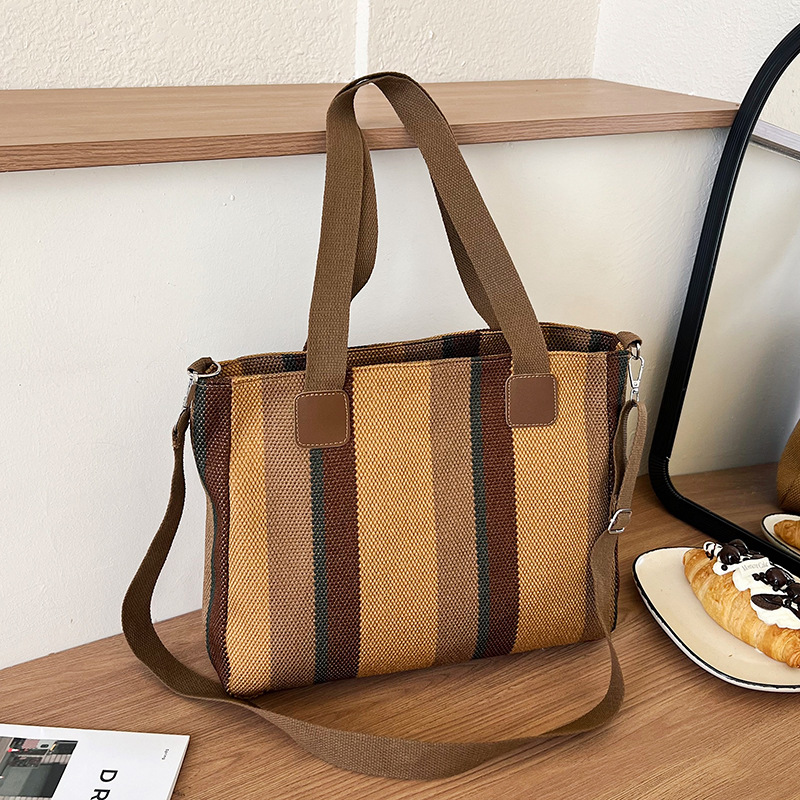 도매 스트라이프 대용량 여성 가방 2024 새로운 패션 통근 캐주얼 스타일 휴대용 토트 어깨 메신저 가방스토어 가기