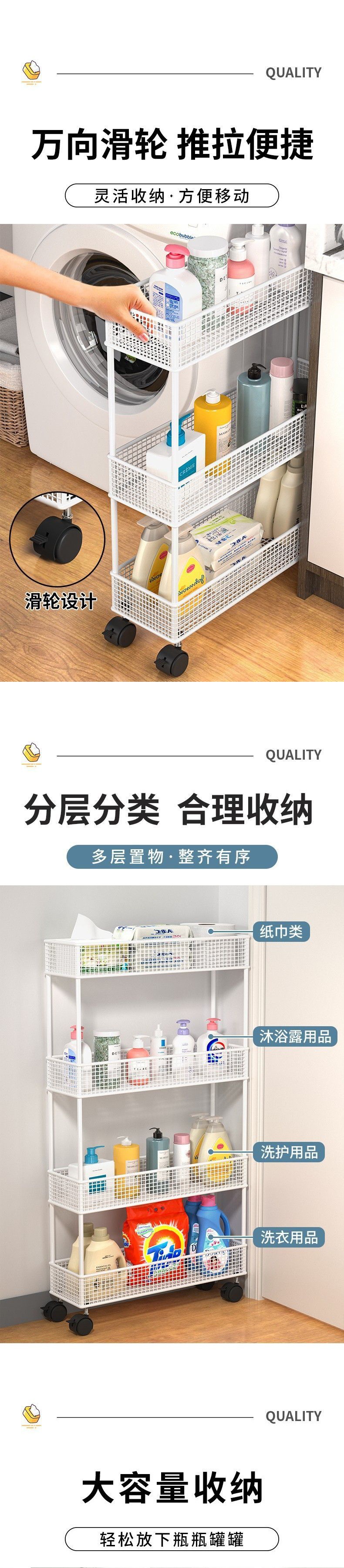 • 3 층 흰색 바퀴 없음 폭 16cm 길이 50cm