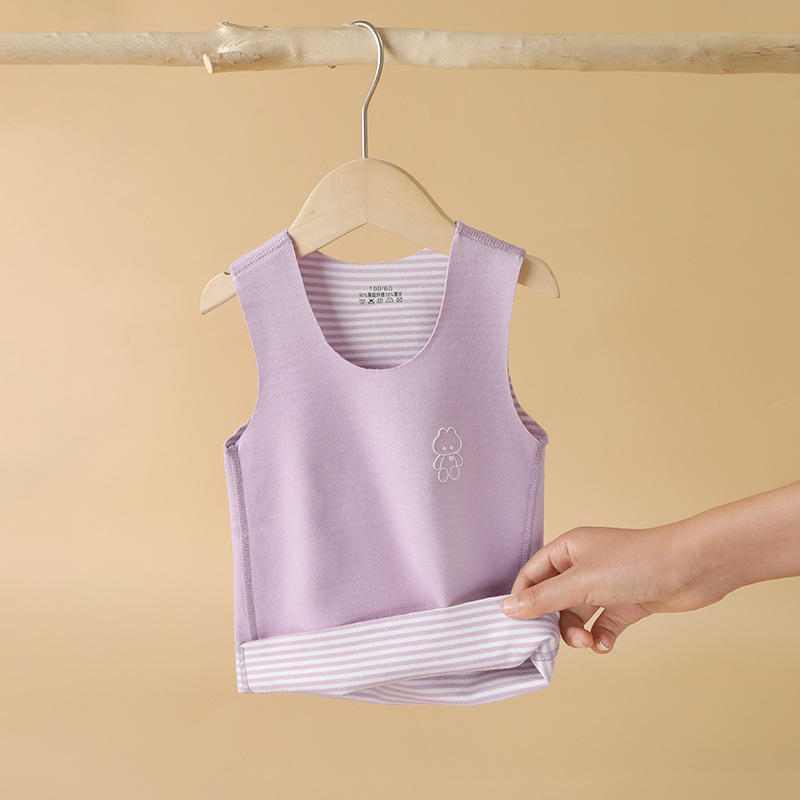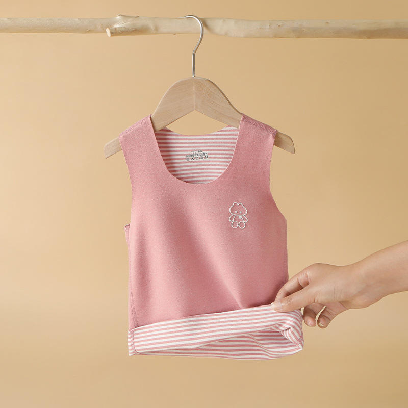 가을과 겨울 어린이 캔디 컬러 양면 샌딩 크루넥 따뜻한 조끼 소년과 소녀를위한 작은 줄무늬베이스 조끼