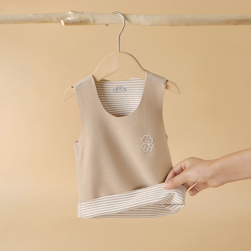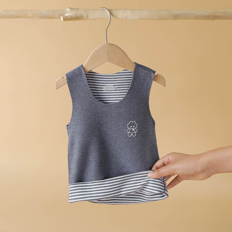 가을과 겨울 어린이 캔디 컬러 양면 샌딩 크루넥 따뜻한 조끼 소년과 소녀를위한 작은 줄무늬베이스 조끼스토어 가기