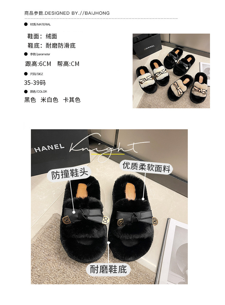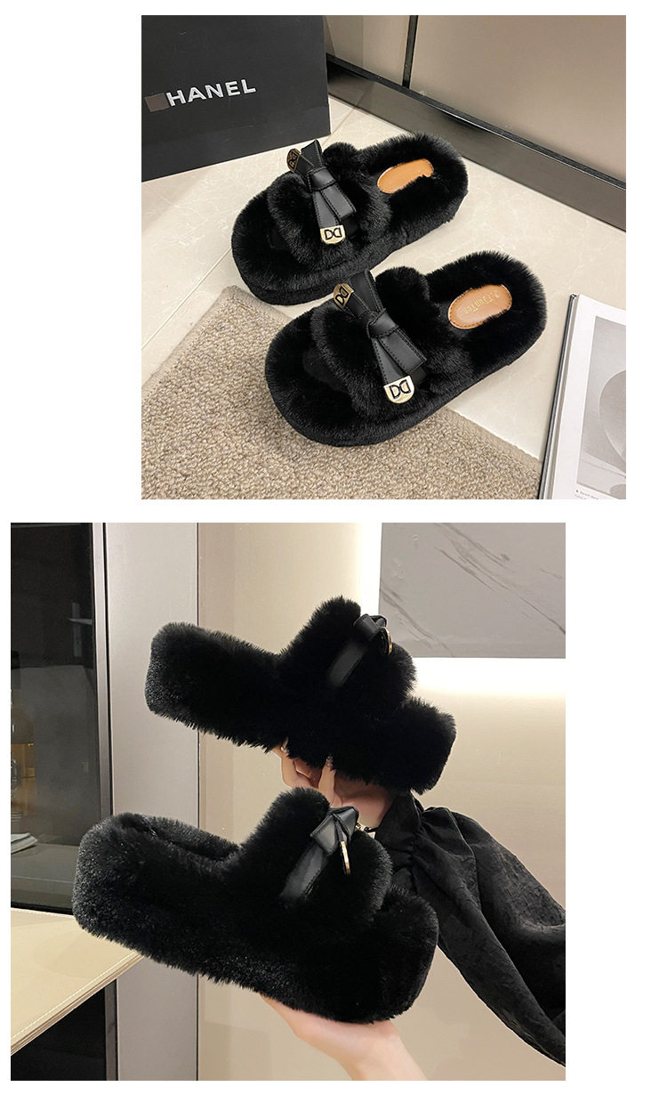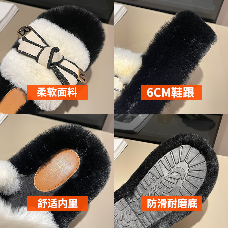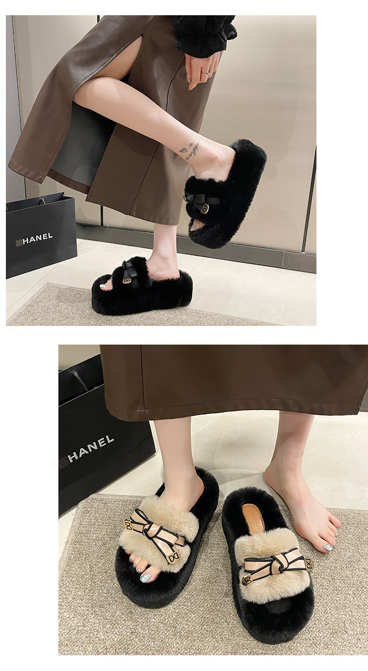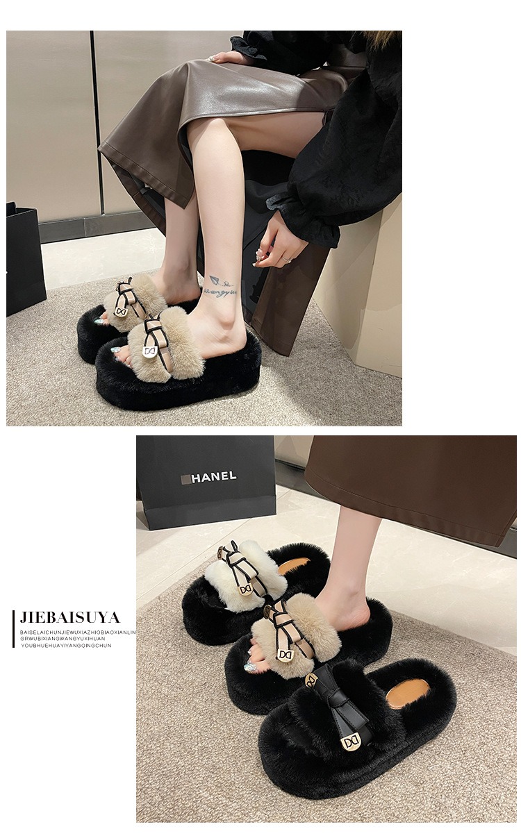 2025년 봄/가을 신상 여성용 털 슬리퍼, 고급스러운 두꺼운 밑창 키높이 슬리퍼스토어 가기