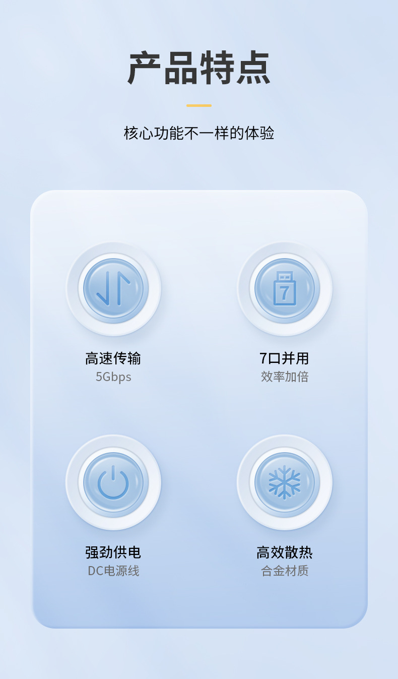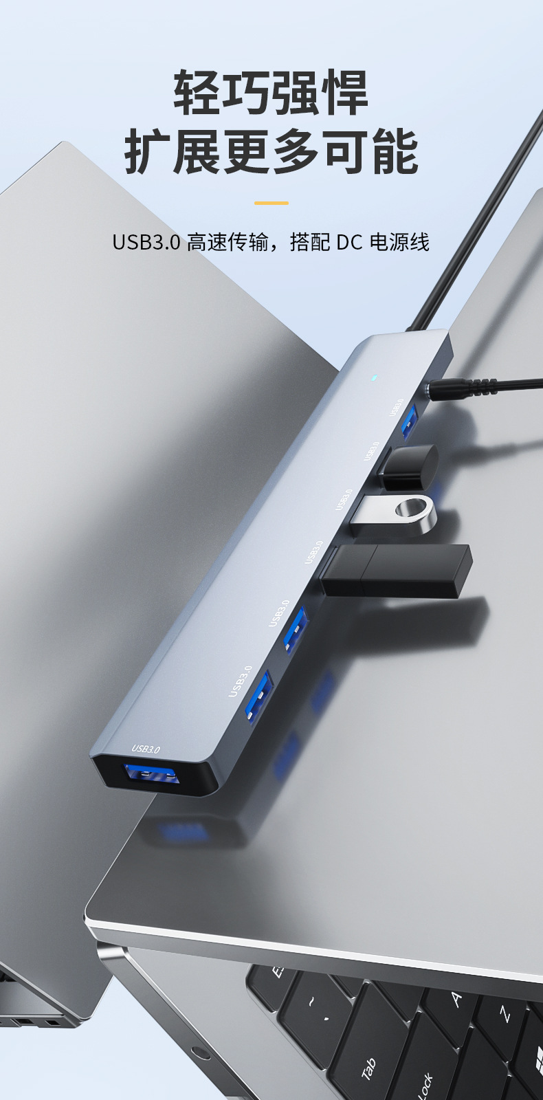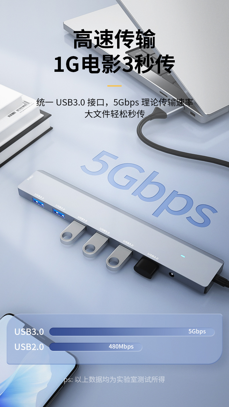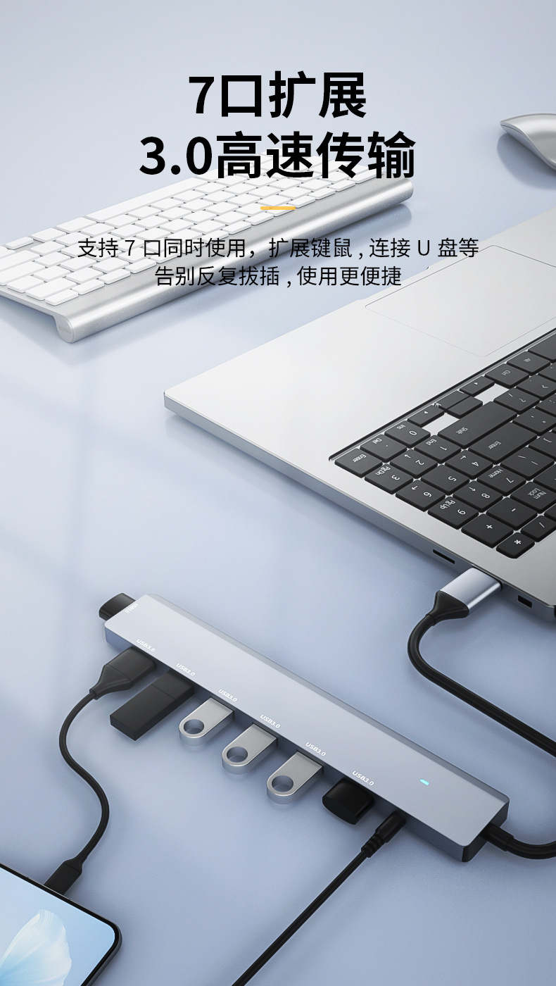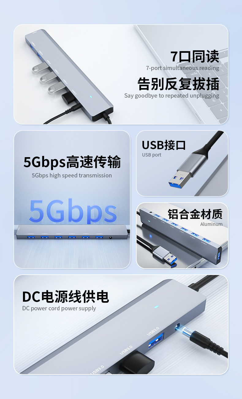 Usb3.0 허브 고속 7 포트 1-7 익스텐더 허브 스플리터 알루미늄 합금 DC3.5 독립 전원 공급 장치스토어 가기
