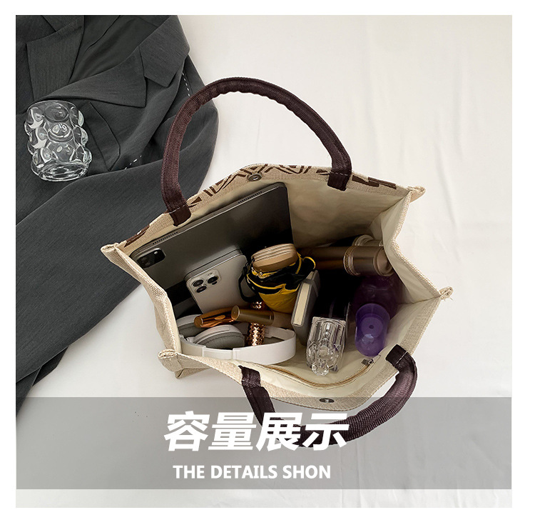 대용량 린넨 가방 여자의 2023 유행 리넨 손 미라 가방 학생 클래스 숄더 토트 백 재고스토어 가기