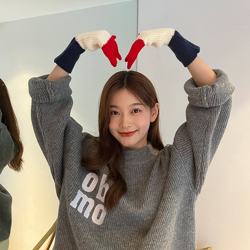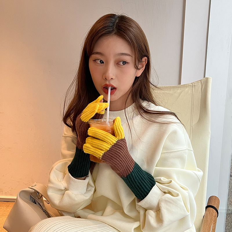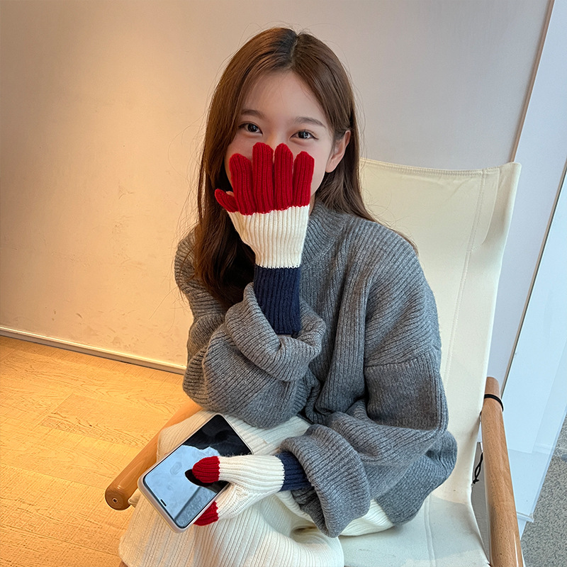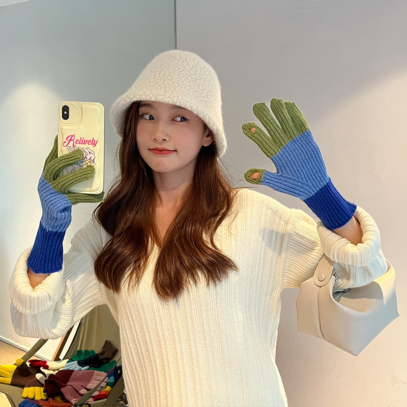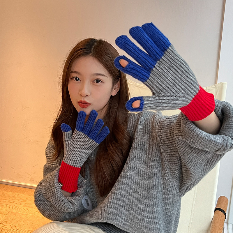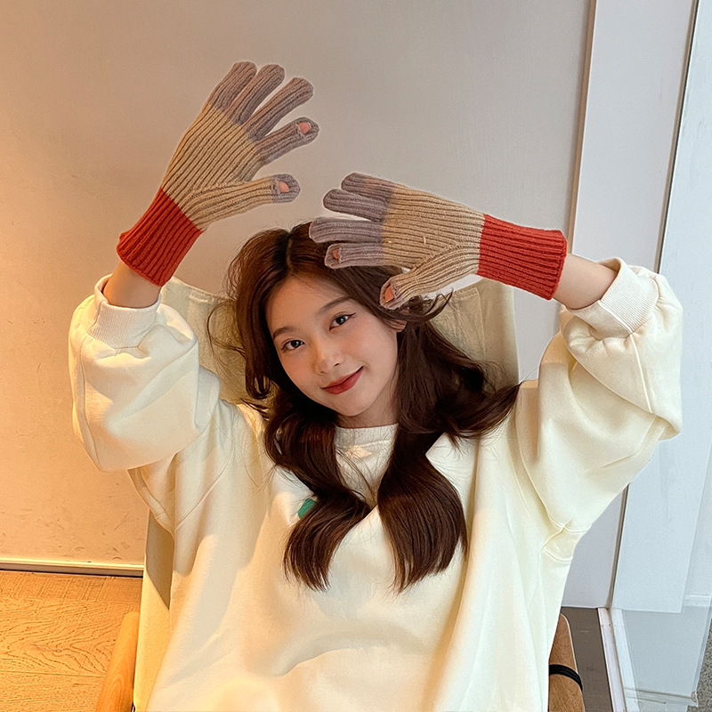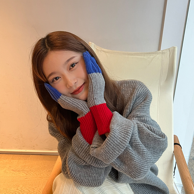 니트 한국 패션 맞춤형 컬러 매칭 장갑 모든 매치 방한 울 따뜻한 통기성 대비 컬러 장갑 가을과 겨울