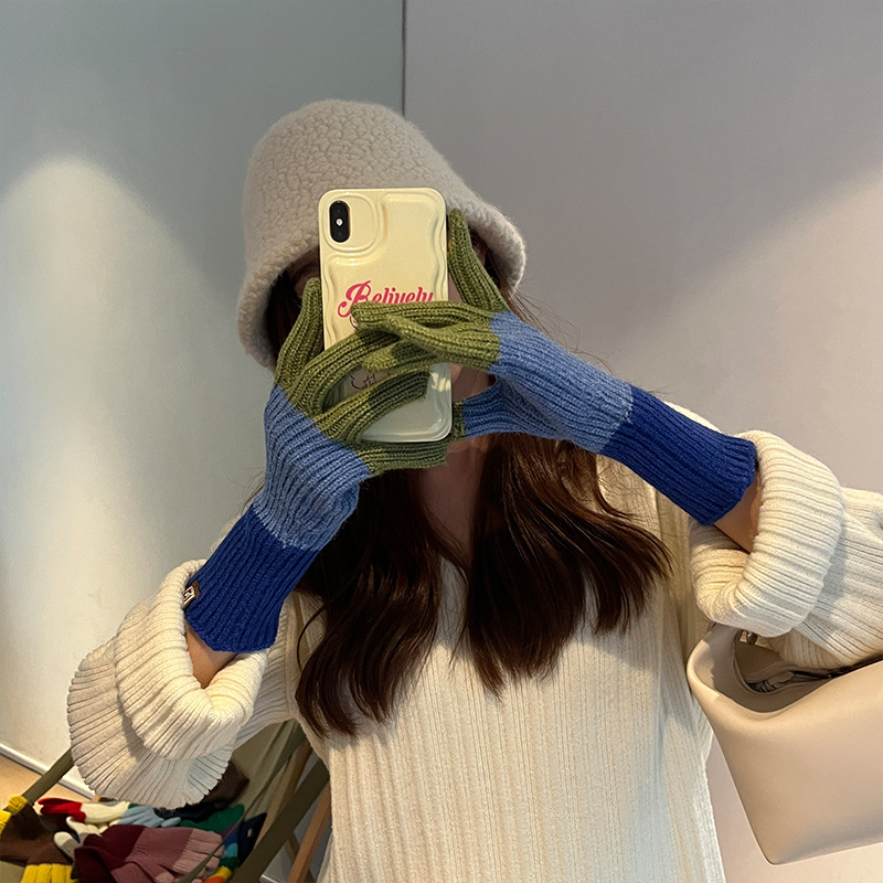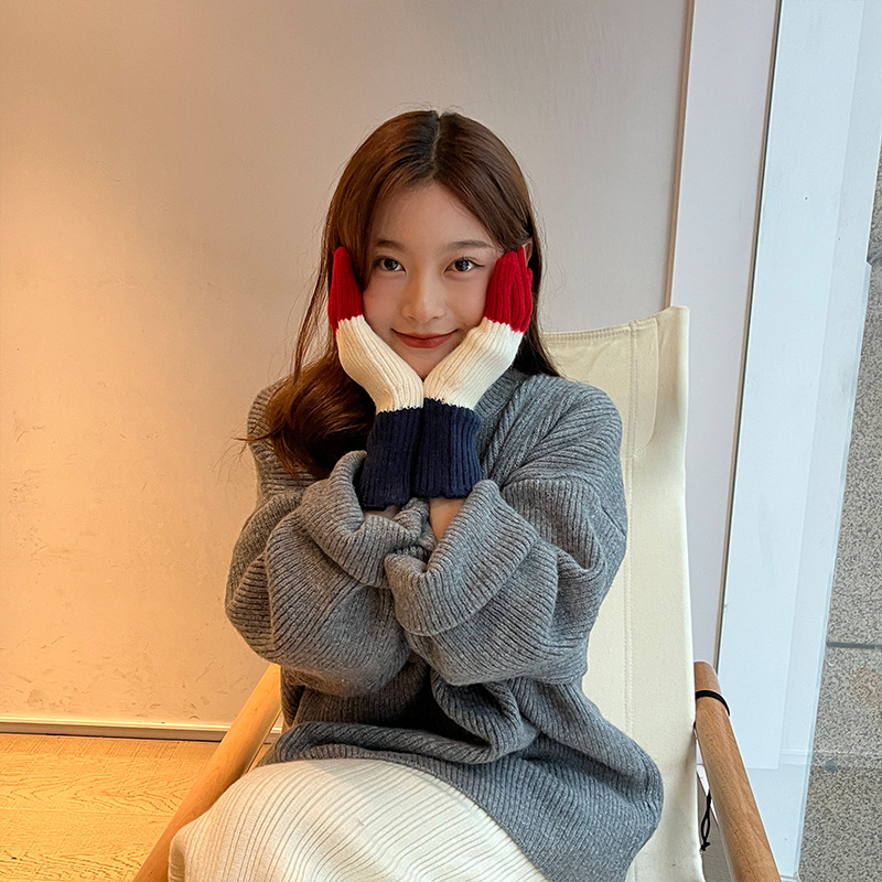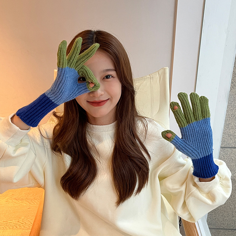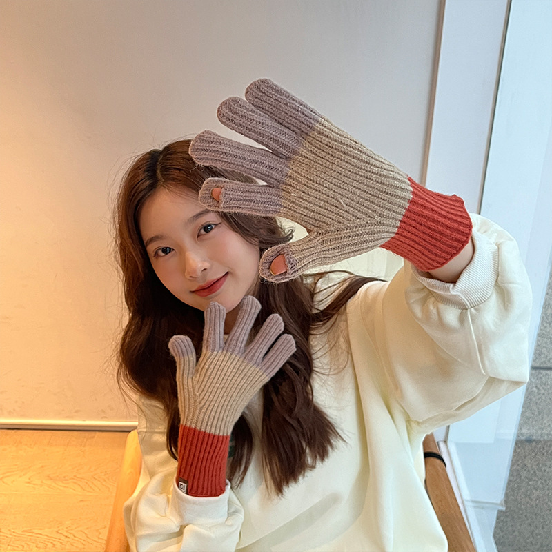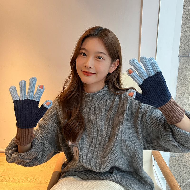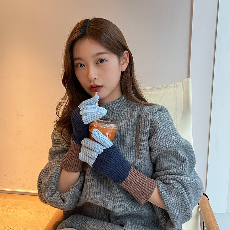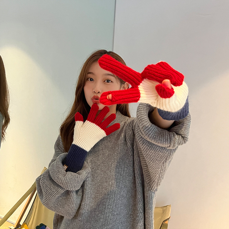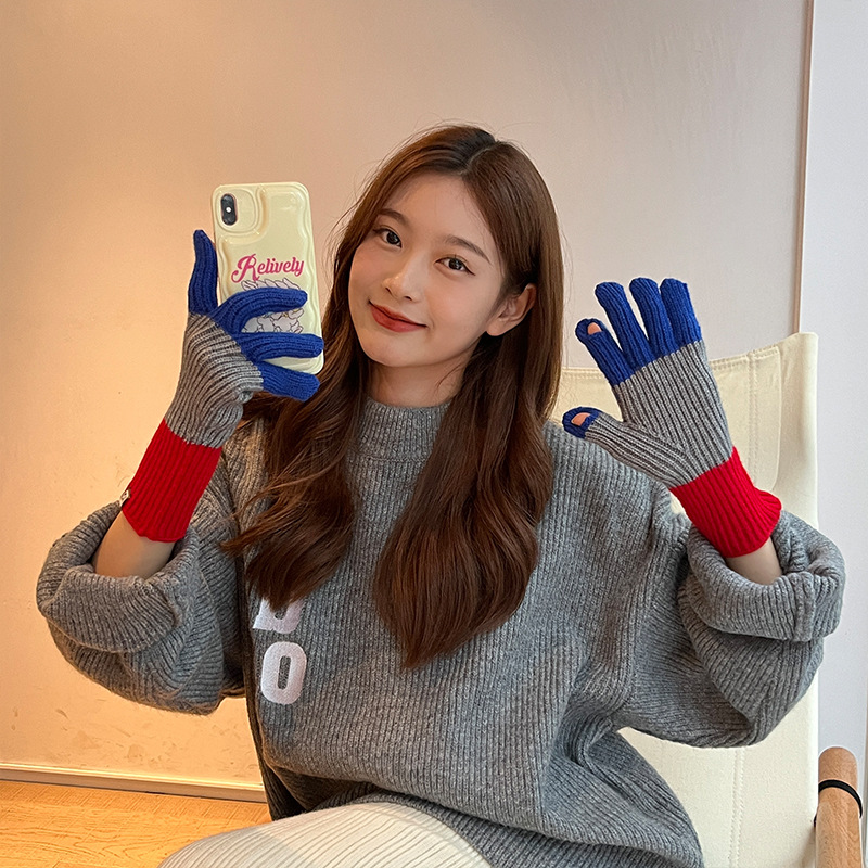 니트 한국 패션 맞춤형 컬러 매칭 장갑 모든 매치 방한 울 따뜻한 통기성 대비 컬러 장갑 가을과 겨울
