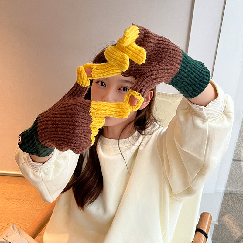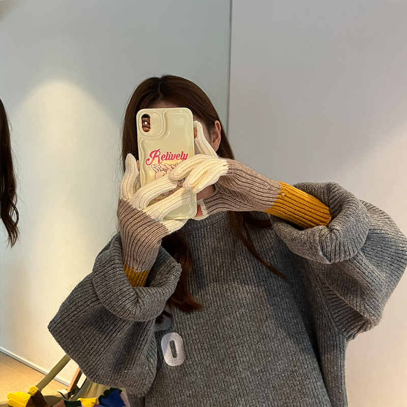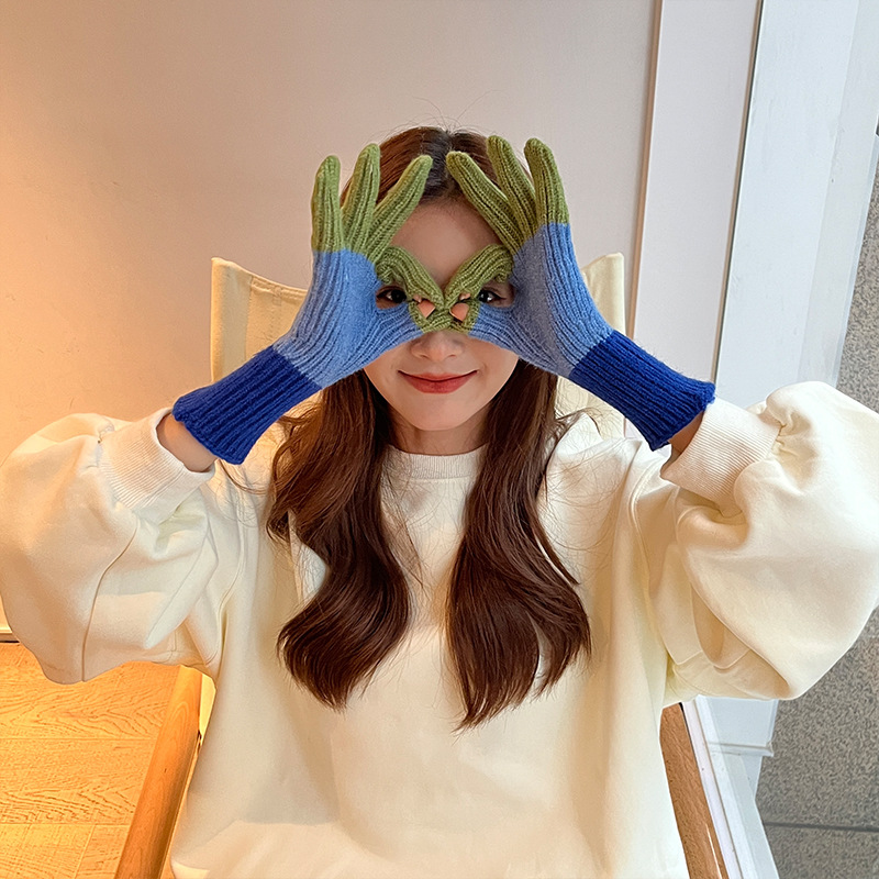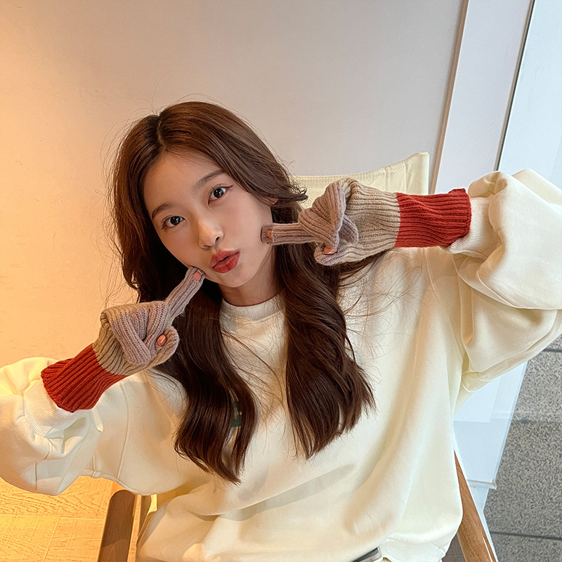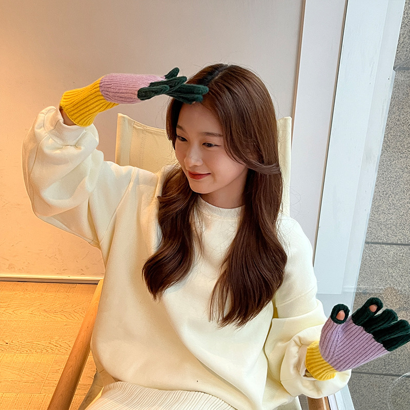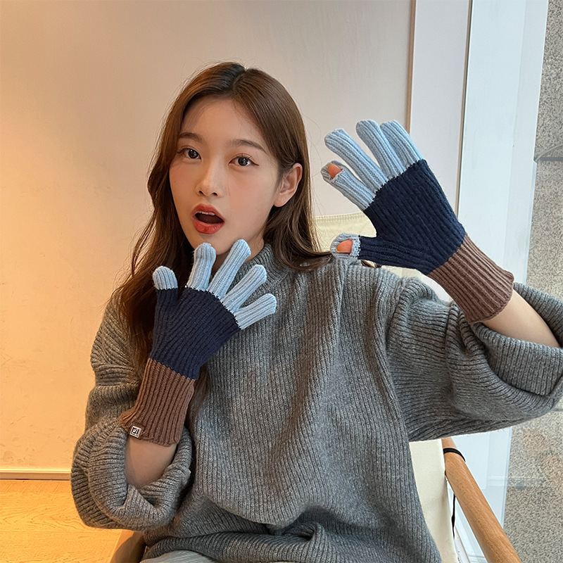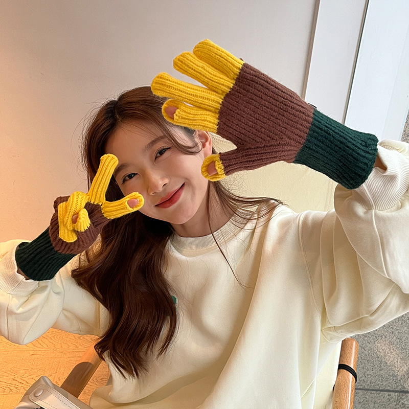니트 한국 패션 맞춤형 컬러 매칭 장갑 모든 매치 방한 울 따뜻한 통기성 대비 컬러 장갑 가을과 겨울