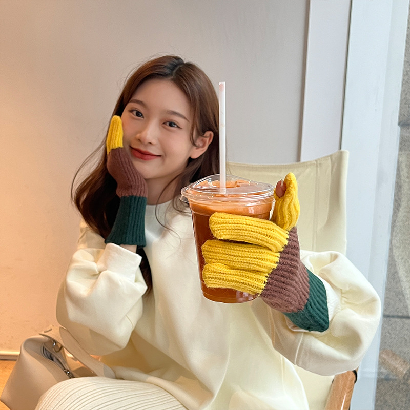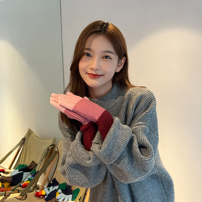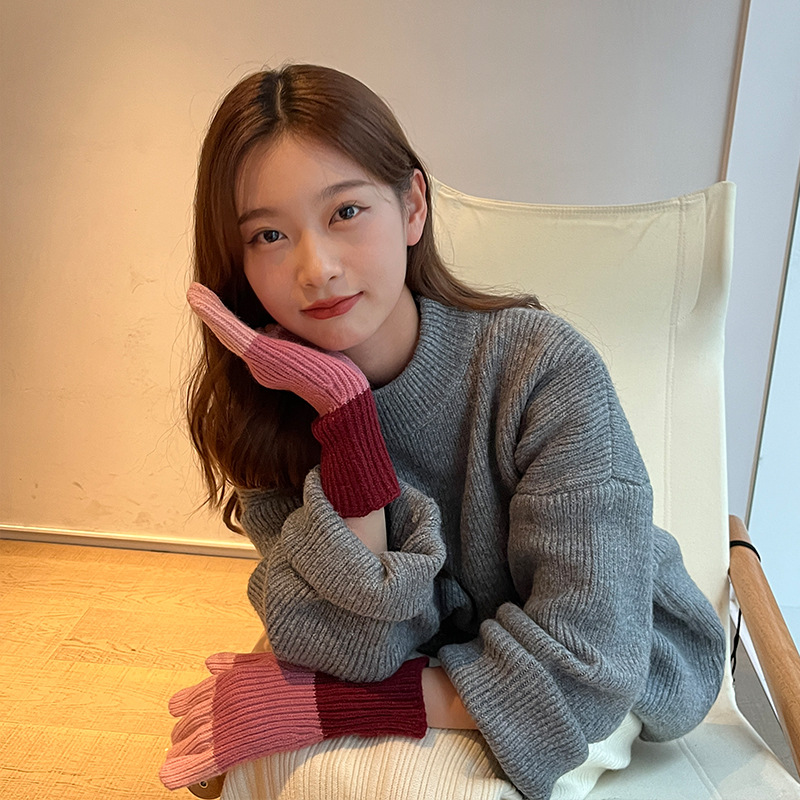 니트 한국 패션 맞춤형 컬러 매칭 장갑 모든 매치 방한 울 따뜻한 통기성 대비 컬러 장갑 가을과 겨울스토어 가기