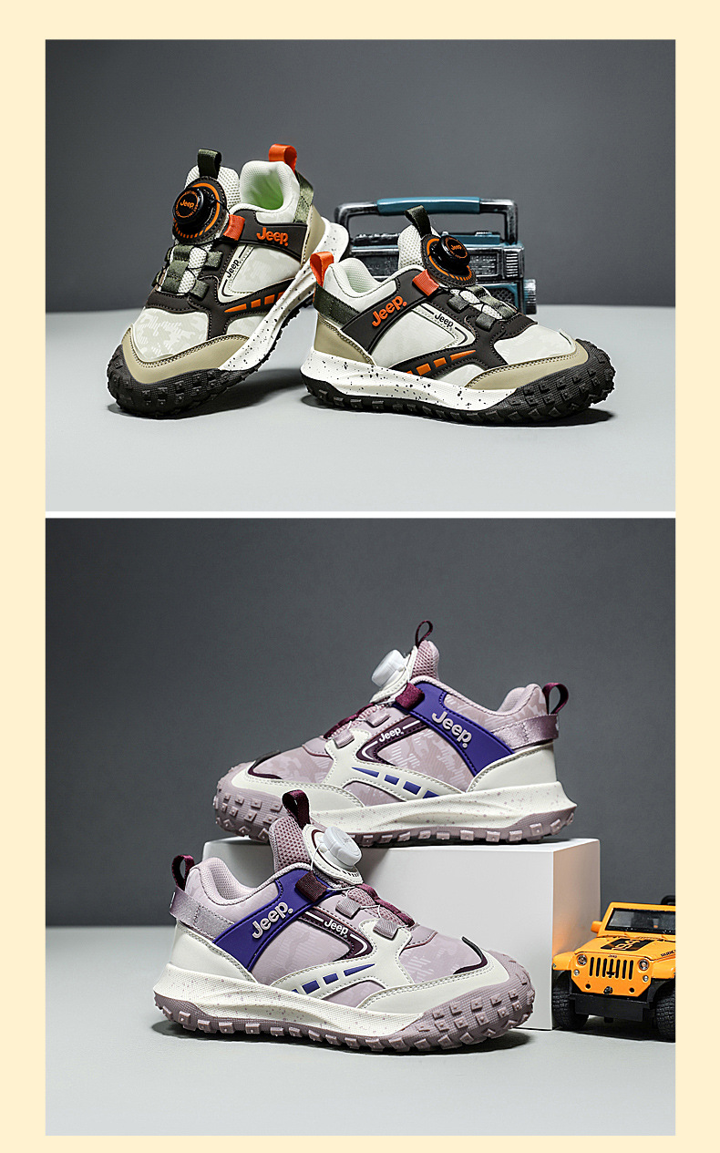 지프 아동 신발 2023 가을과 겨울 새로운 회전 버튼 러닝화 방수 가죽 운동화 미끄럼 방지 내마모성 소년