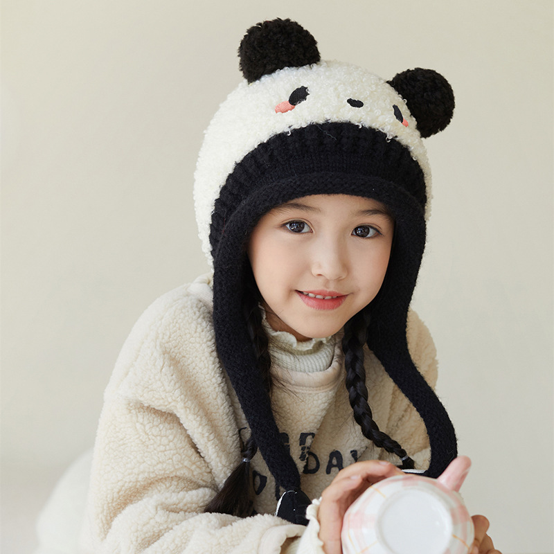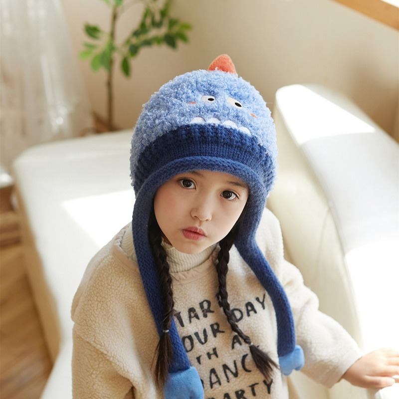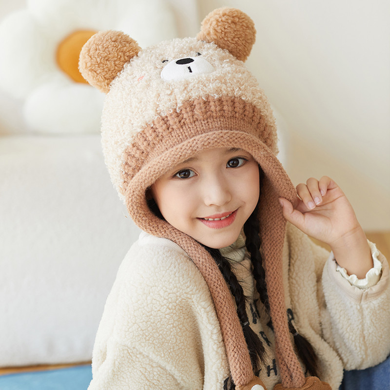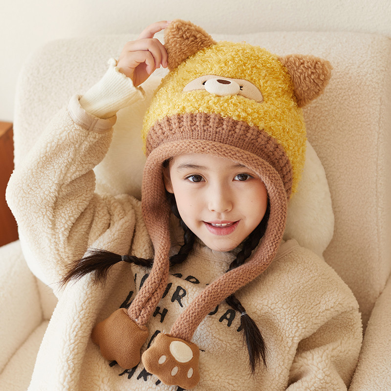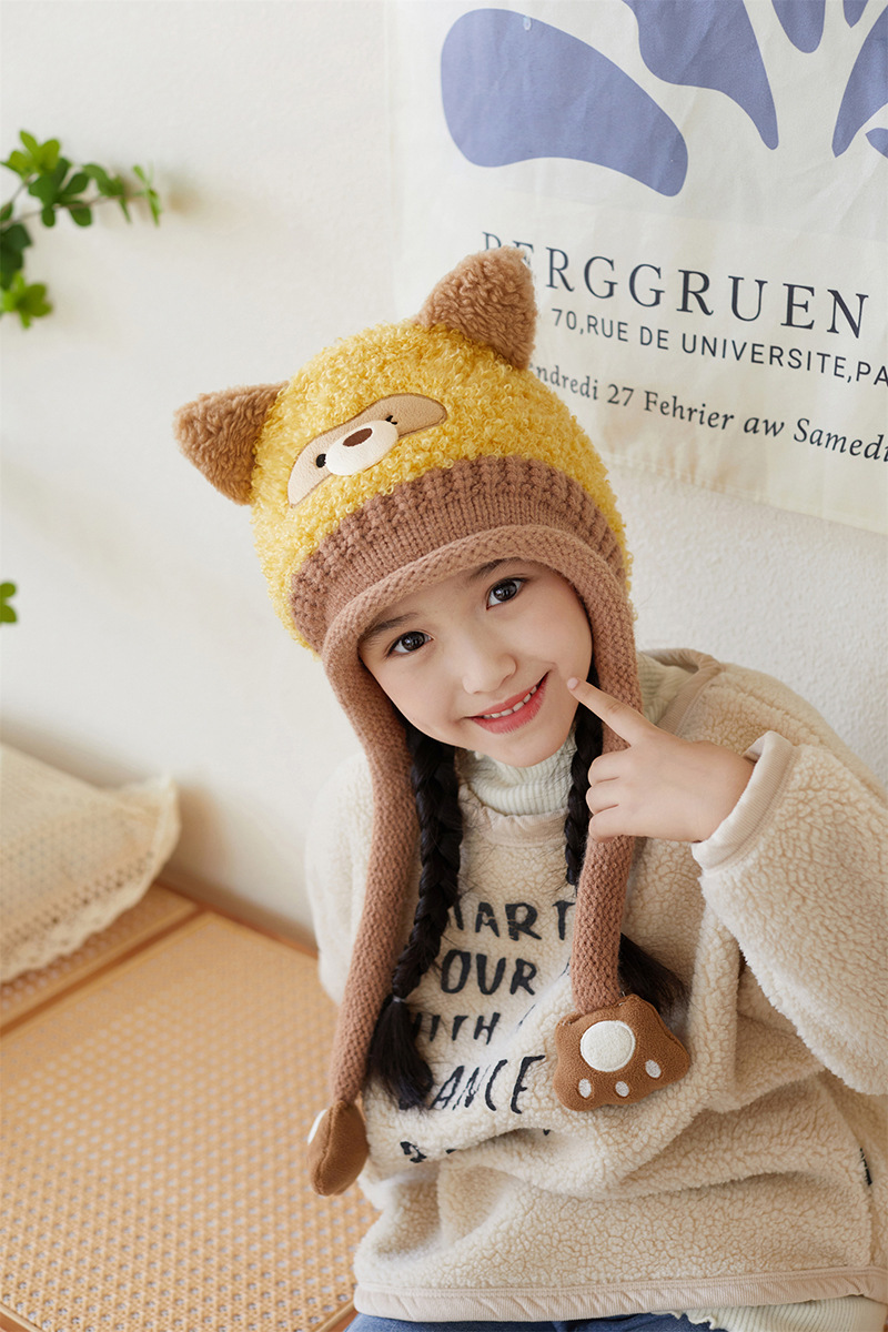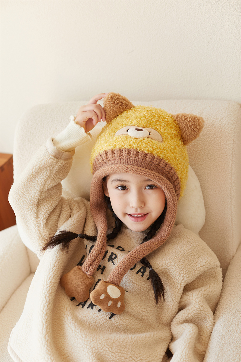 새로운 가을 겨울 아기 모자, 끈이 달린 귀 보호 모자, 털이 있는 따뜻하고 방풍 기능이 있는 귀여운 동물 어린이 니트 모자